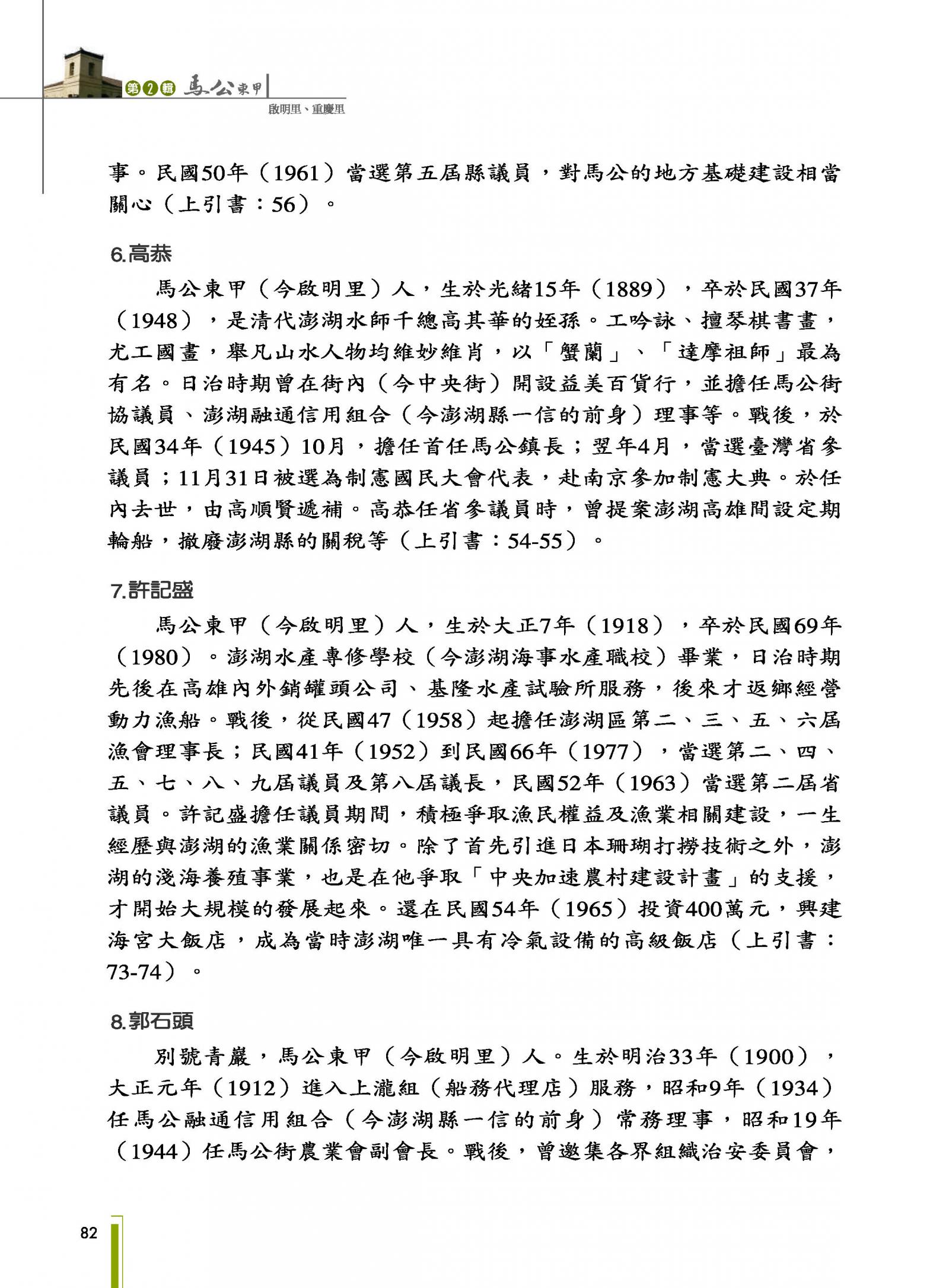 馬公市各里人文鄉土叢書─第二輯|馬公東甲(啟明里重慶里)|書內搜尋