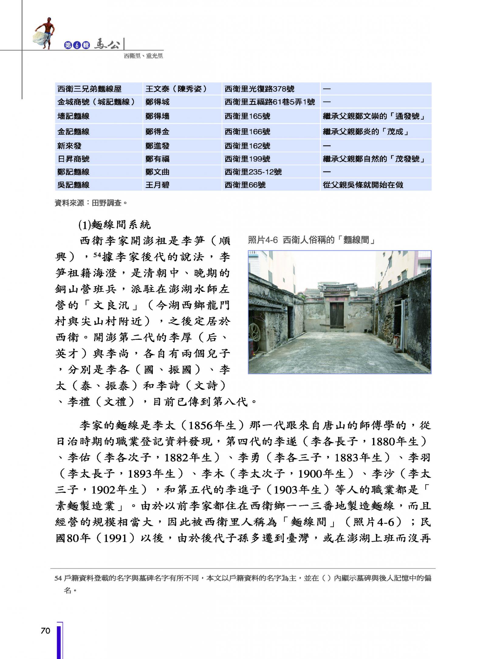 馬公市各里人文鄉土叢書─第六輯|西衛里重光里|書內搜尋
