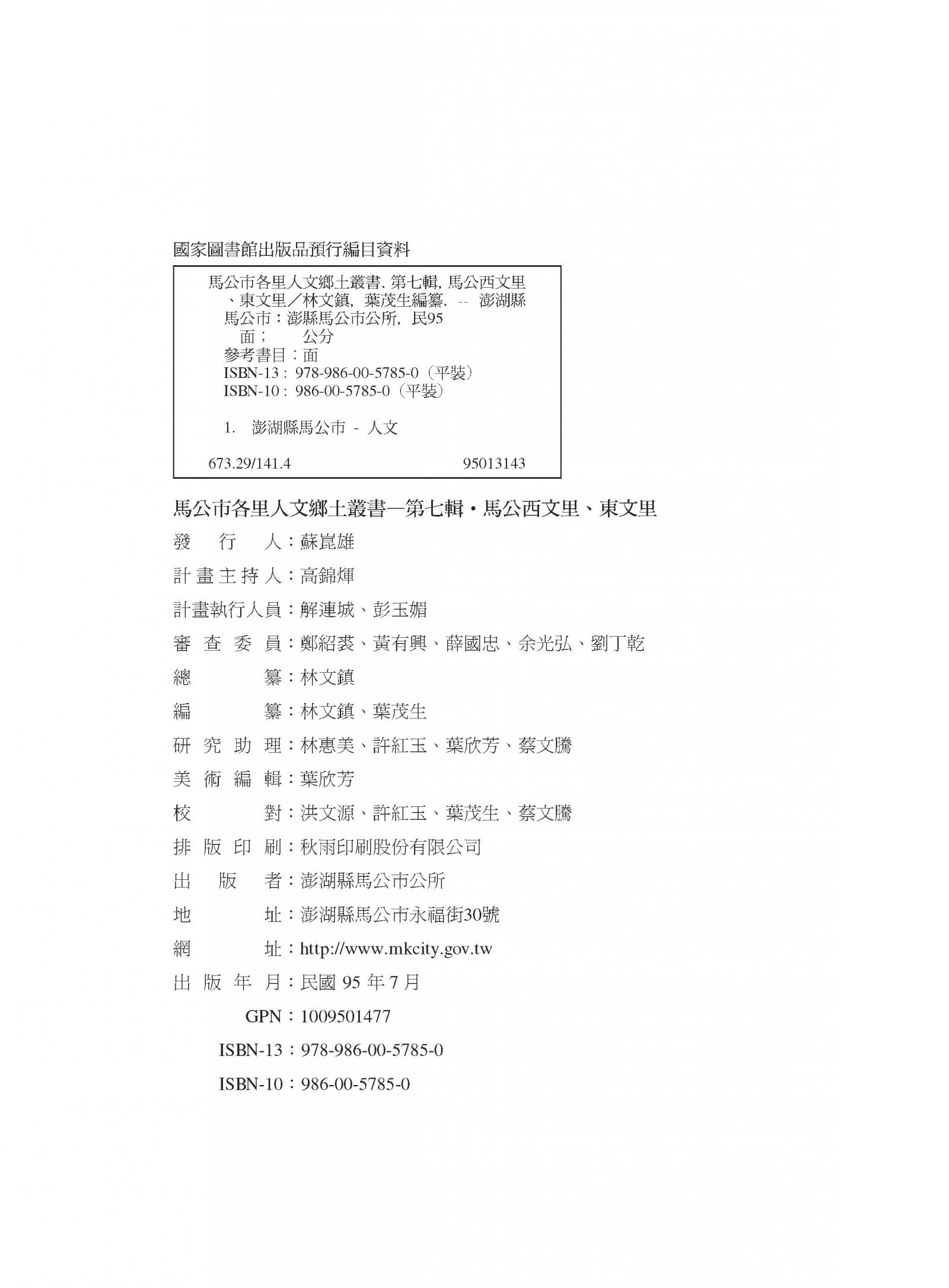 馬公市各里人文鄉土叢書─第七輯|西文里東文里|書內搜尋