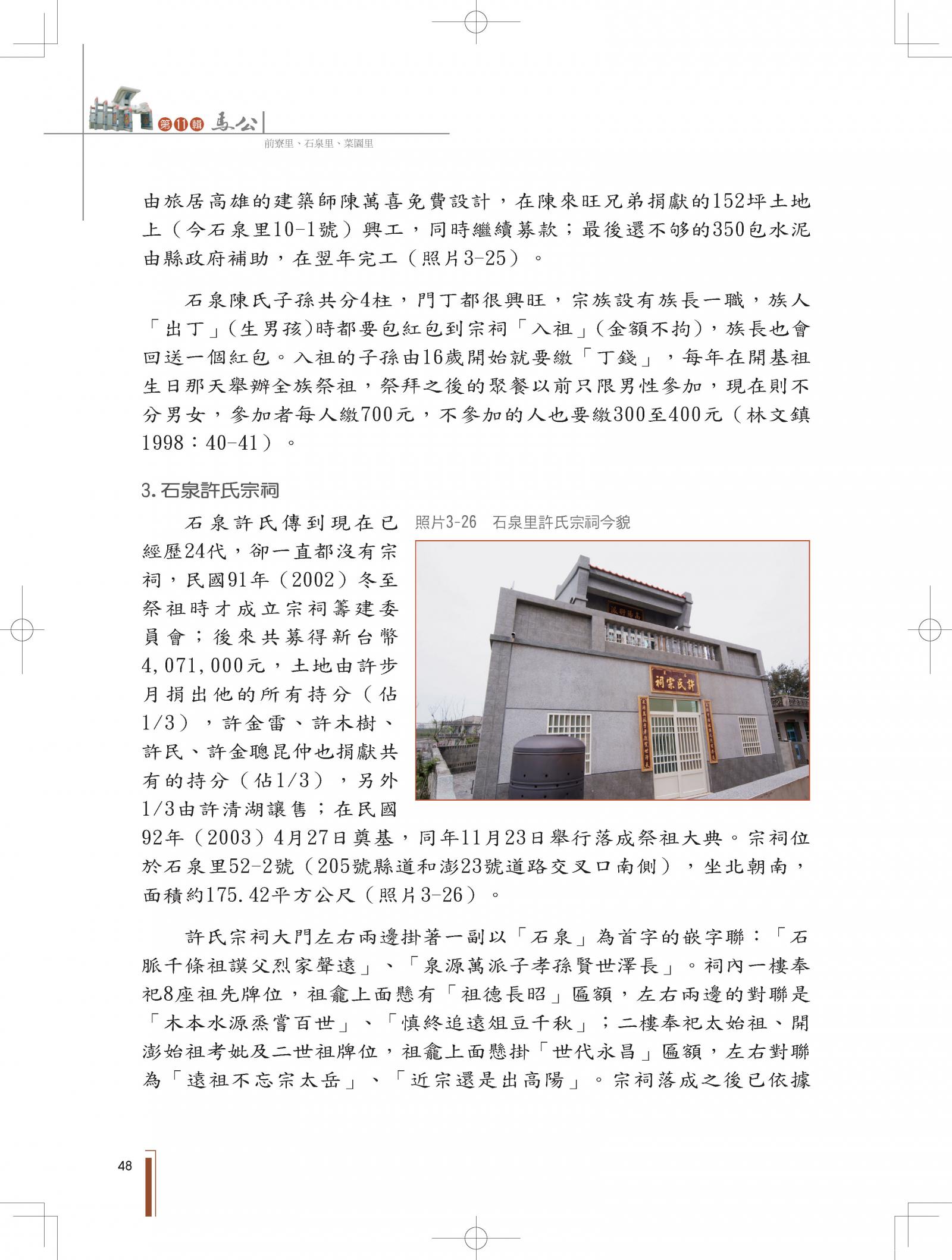 馬公市各里人文鄉土叢書─第十一輯|前寮里石泉里菜園里|書內搜尋