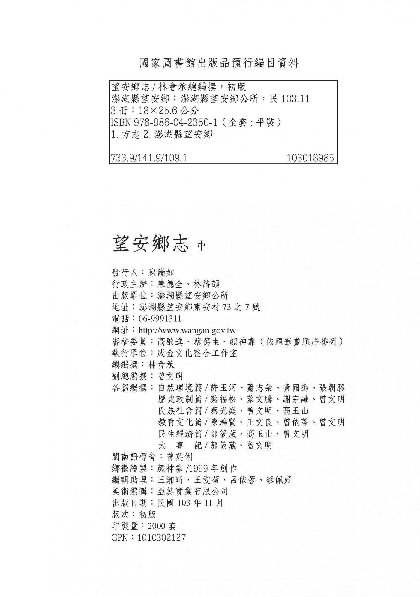 望安鄉志|中中