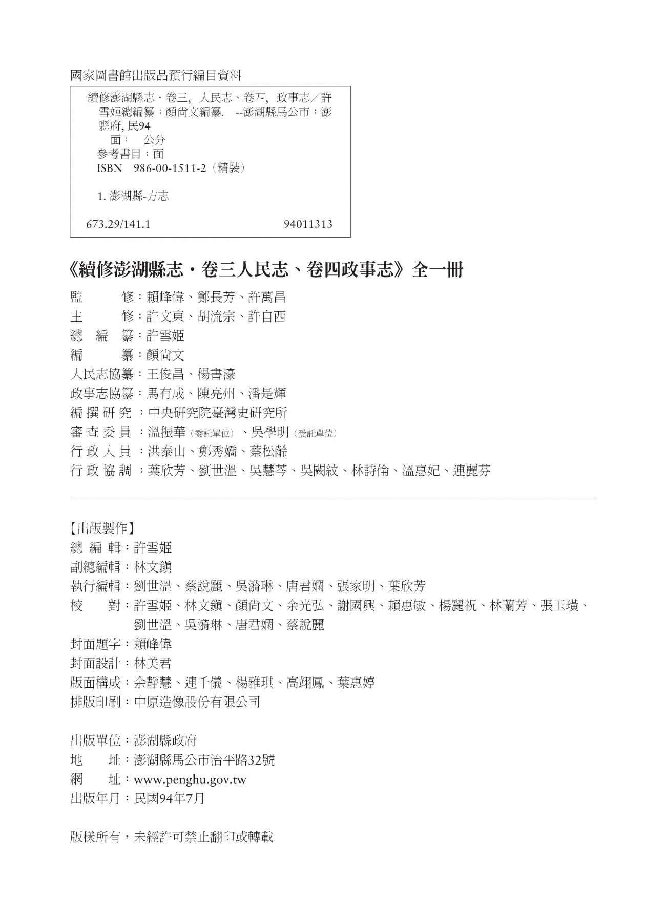 續修澎湖縣志.卷三|人民志人民志