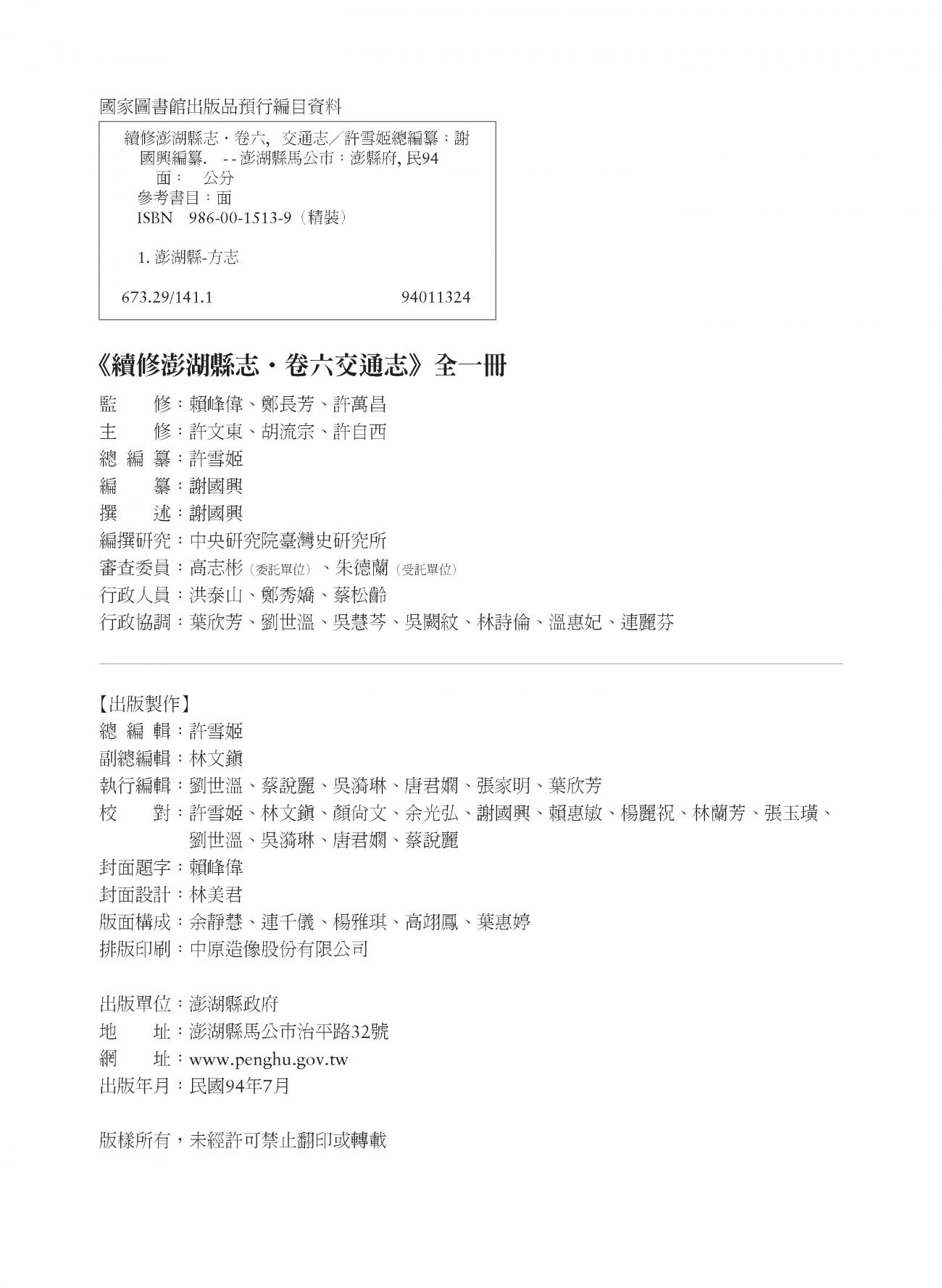 續修澎湖縣志.卷六|交通志交通志