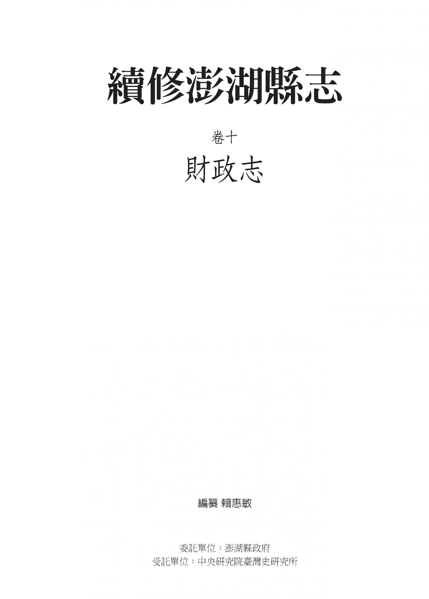 續修澎湖縣志.卷十|財政志財政志