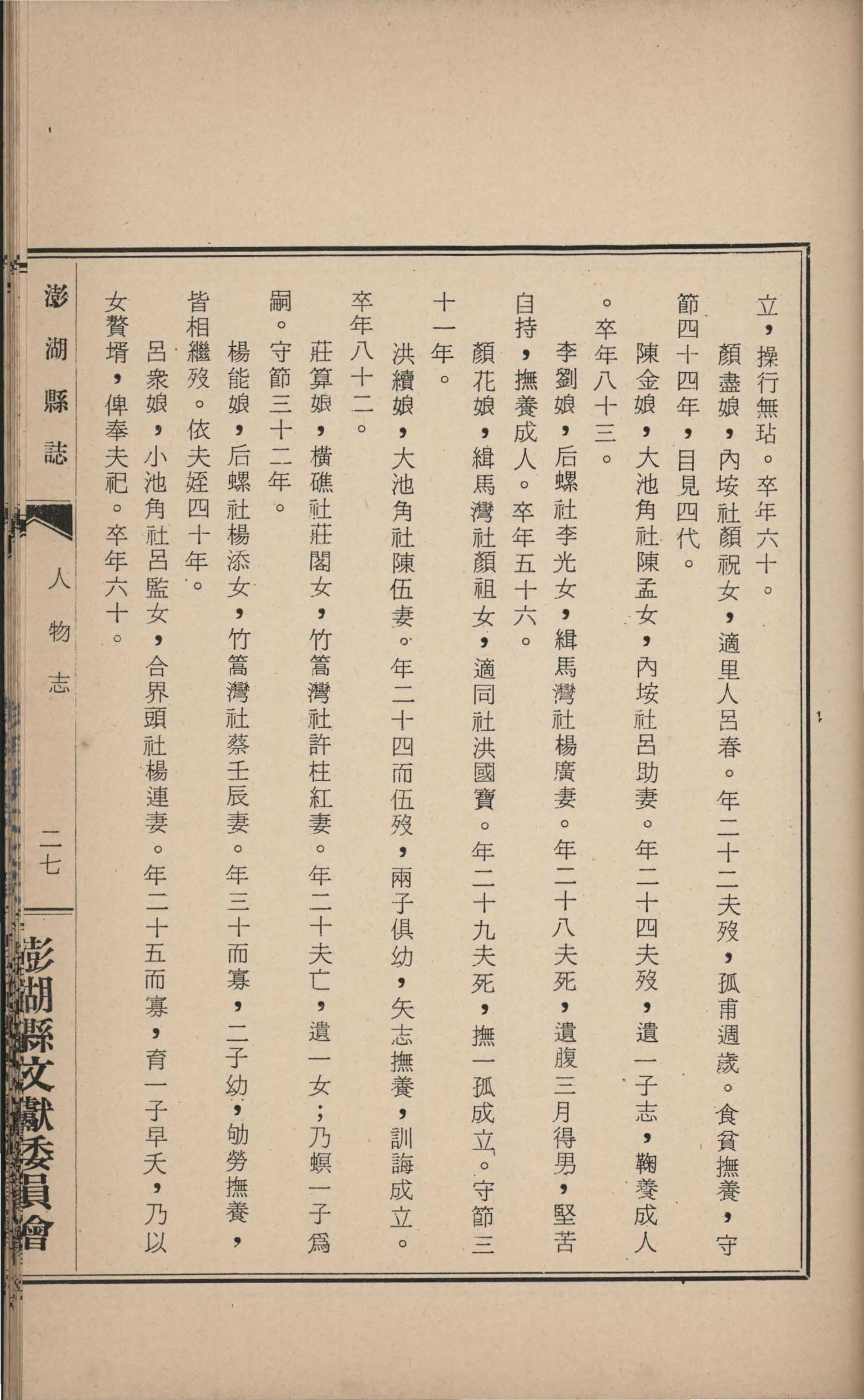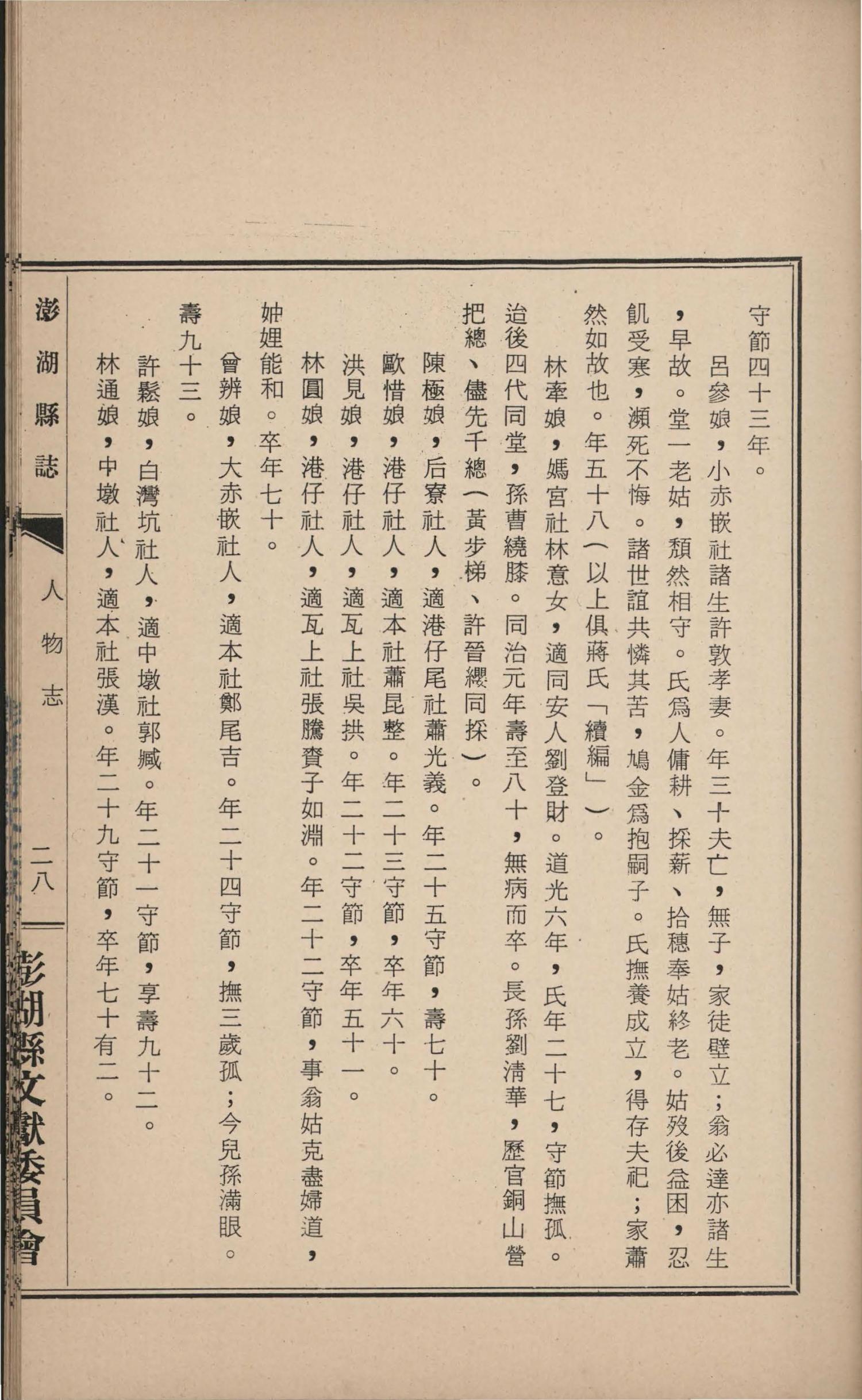 澎湖縣誌.卷十四|人物志人物志