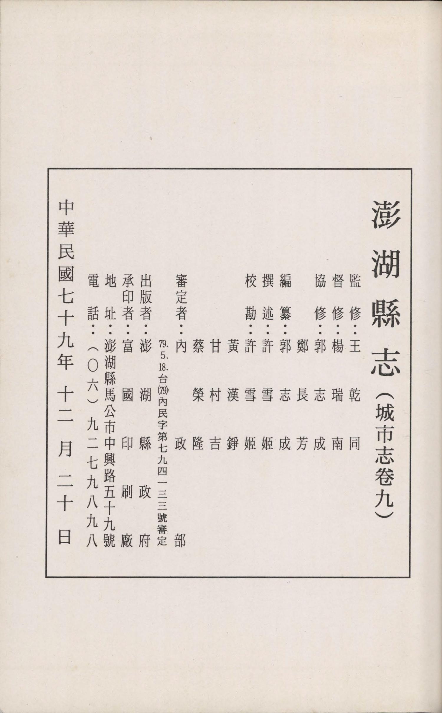 澎湖縣志.卷九|城市志城市志