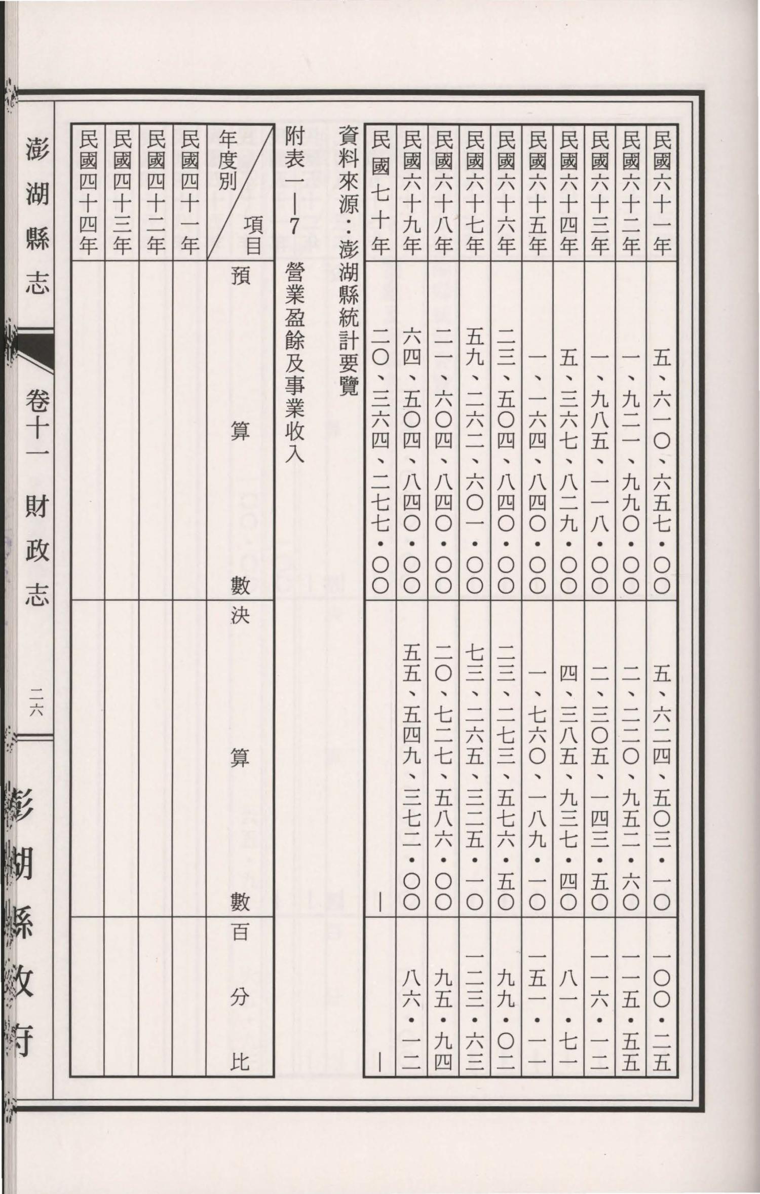 澎湖縣志.卷十一|財政志財政志