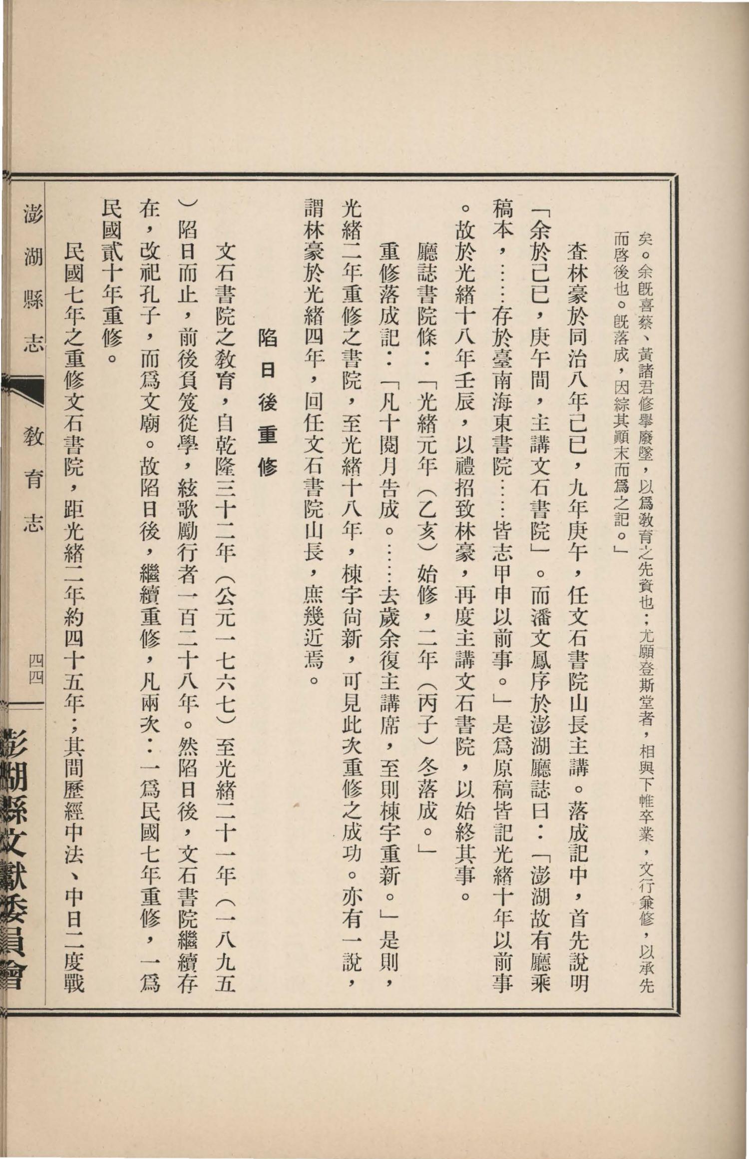 澎湖縣誌.卷十二|教育志教育志