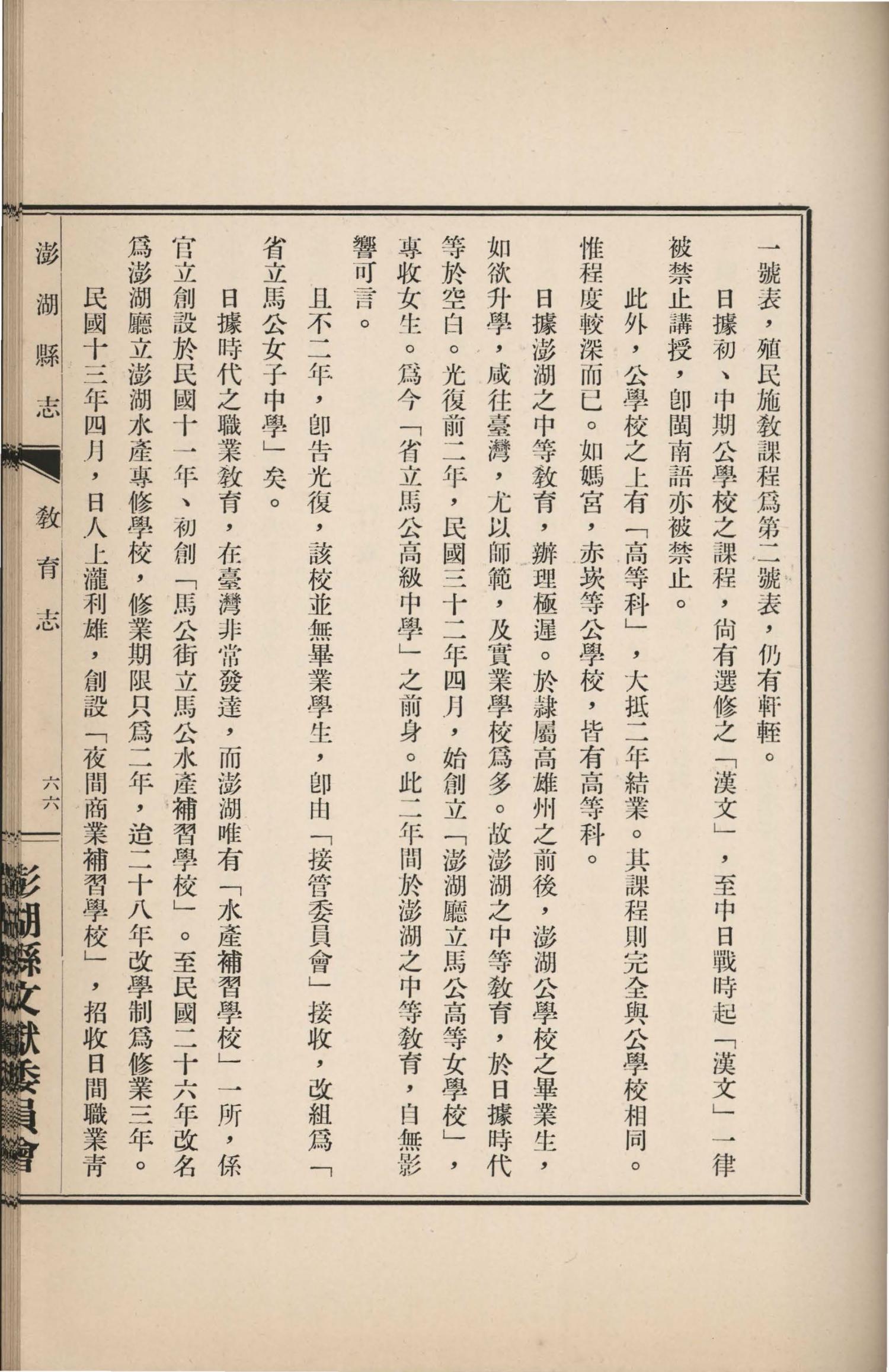 澎湖縣誌.卷十二|教育志教育志