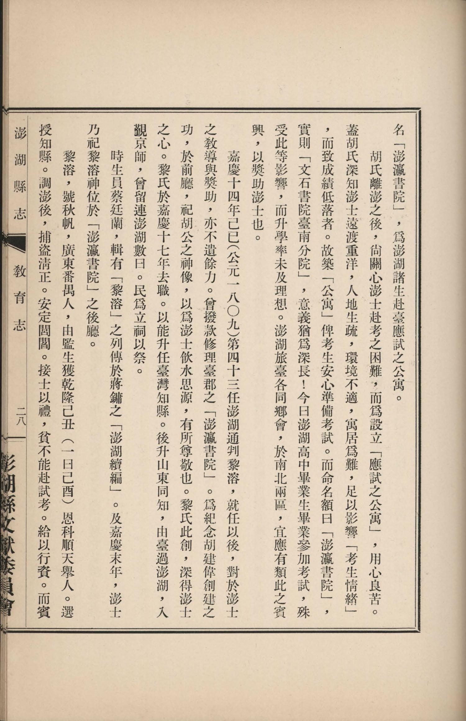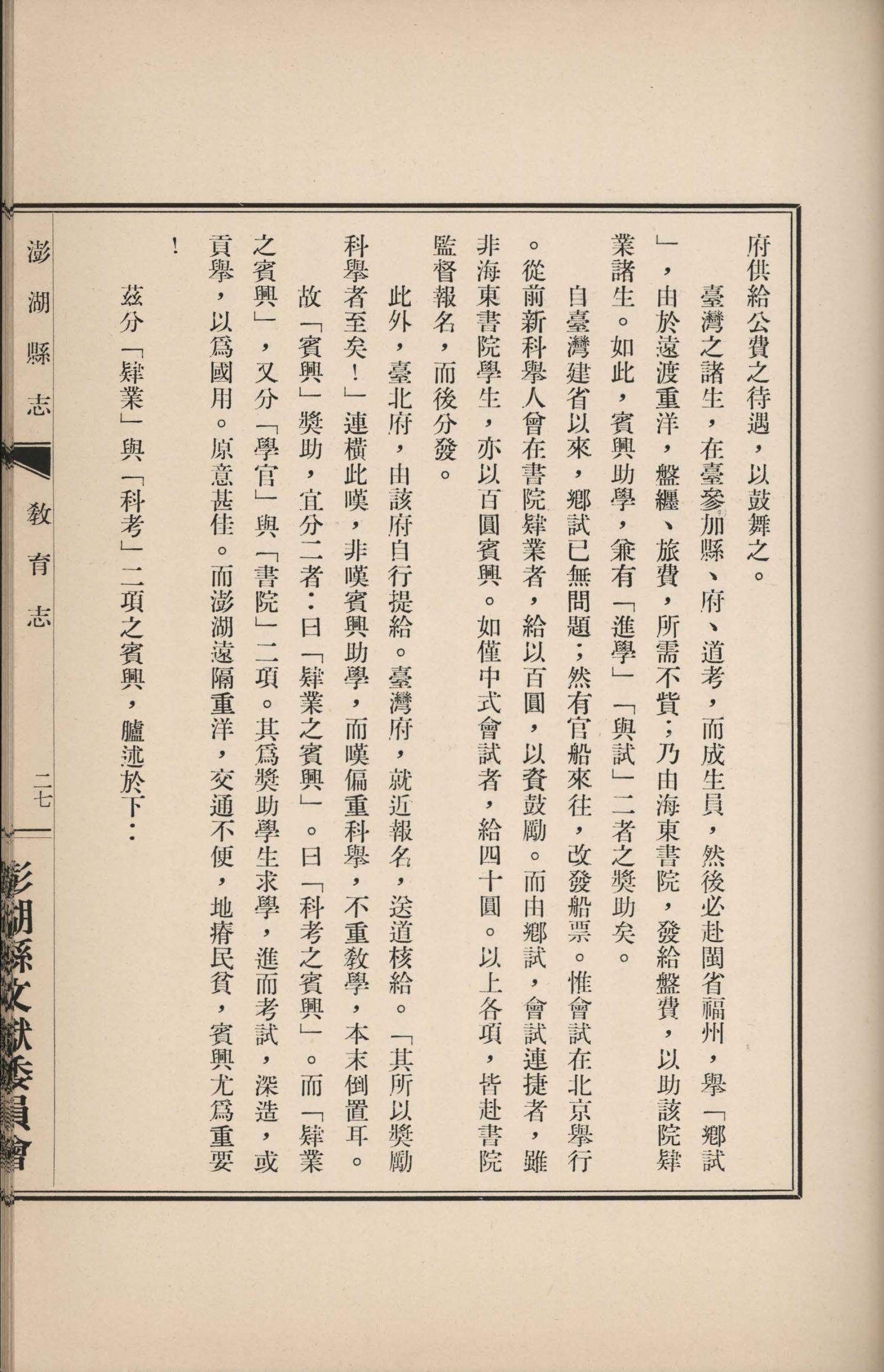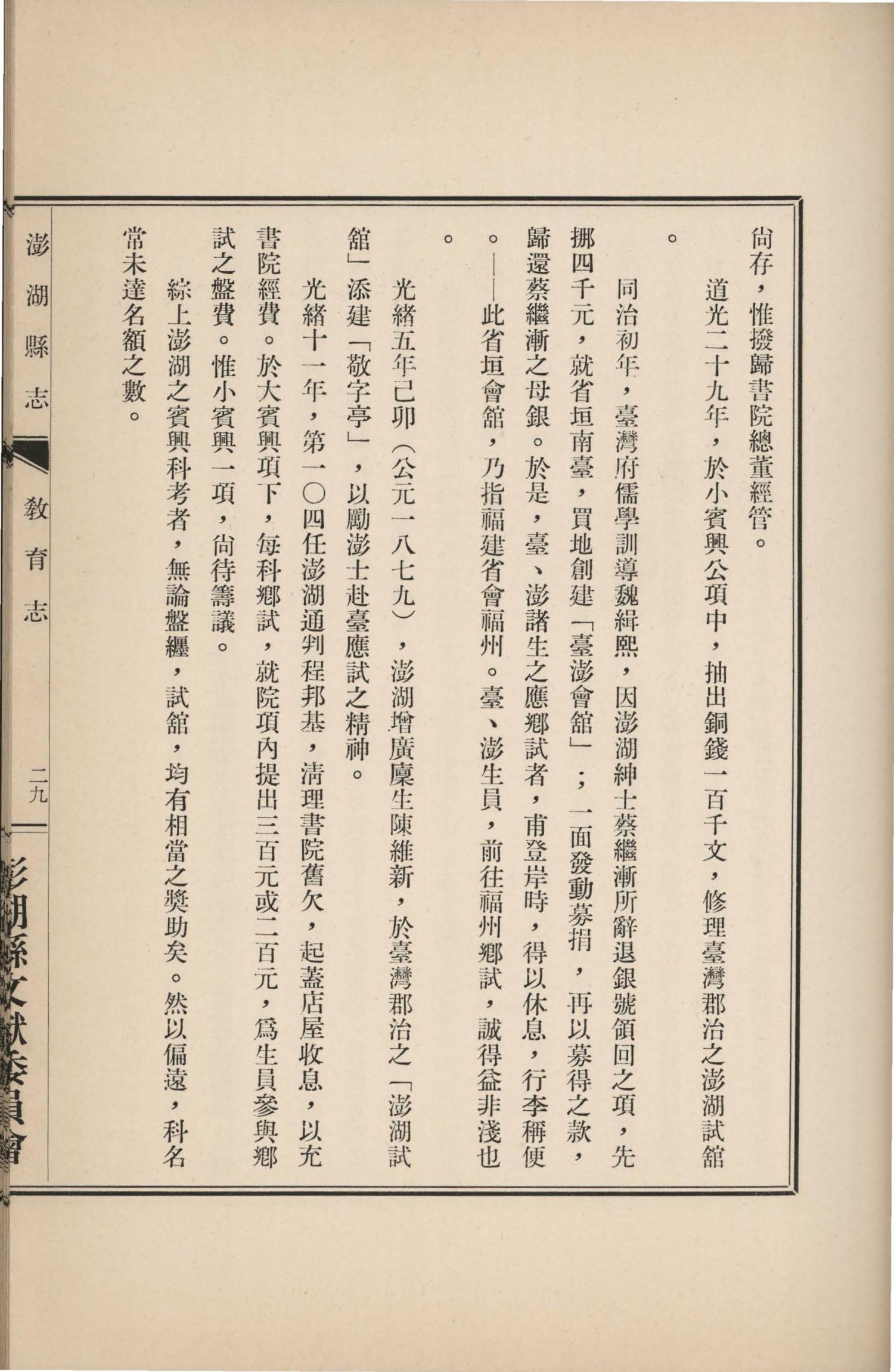 澎湖縣誌.卷十二|教育志|書內搜尋