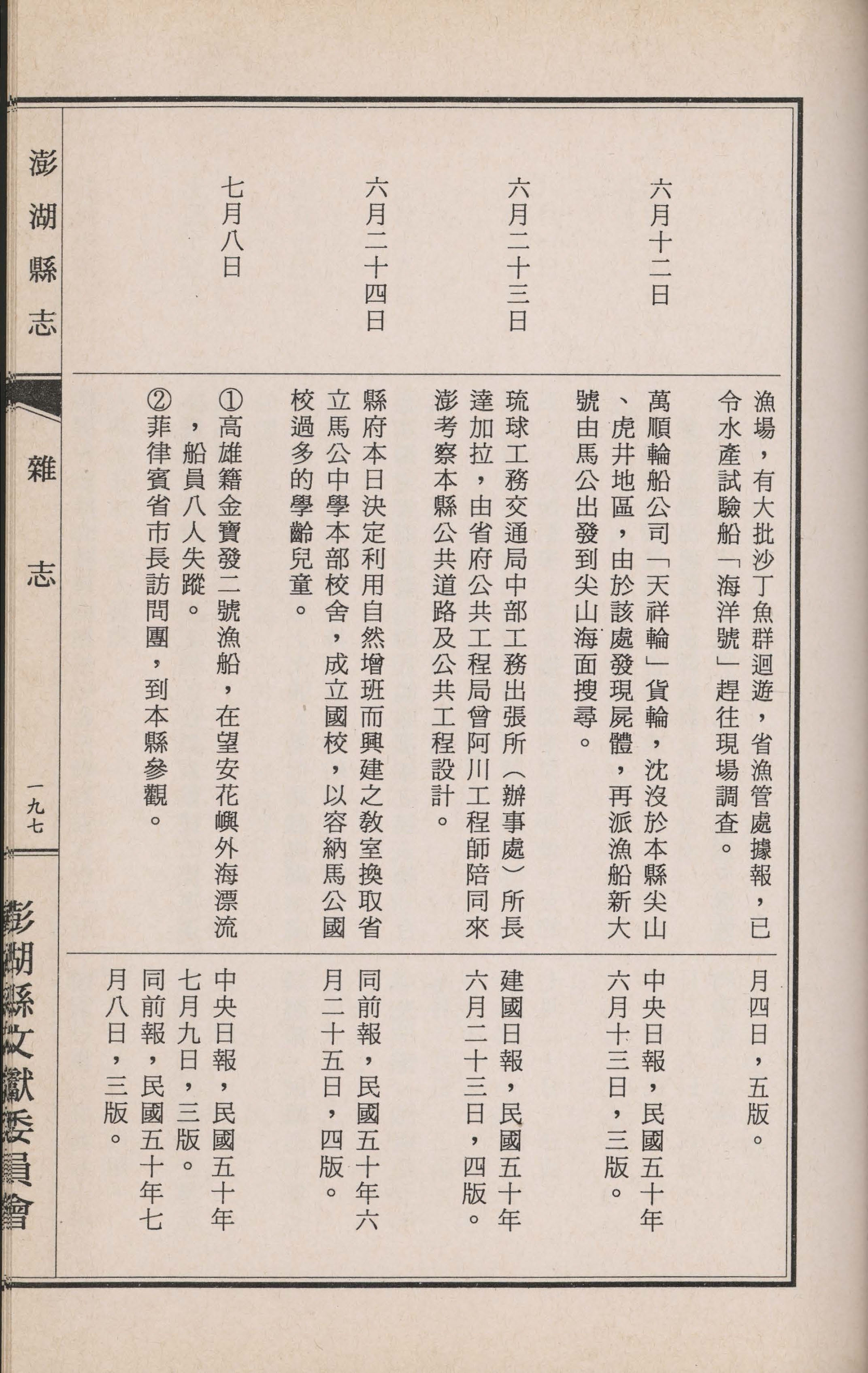 澎湖縣誌.卷十五|雜志|書內搜尋