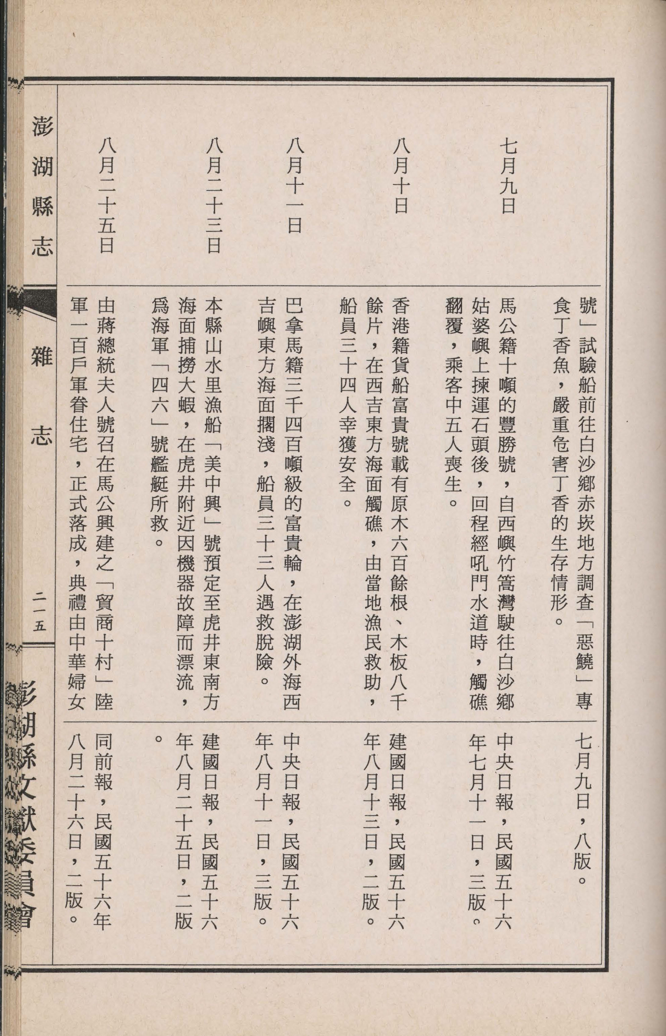 澎湖縣誌.卷十五|雜志|書內搜尋