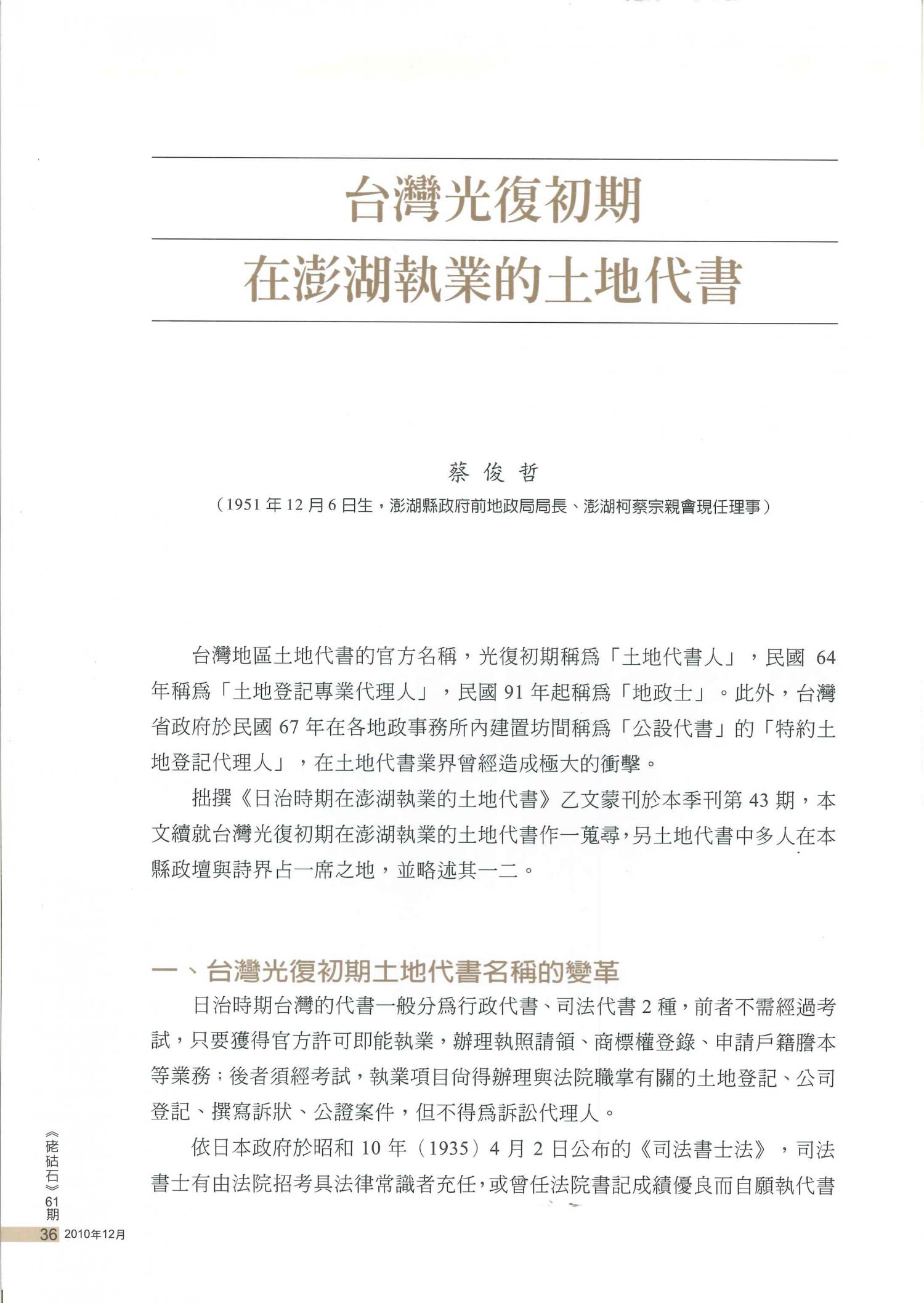 澎湖文獻資料庫提供全文檢索功能,但不持有任何學術文章版權。系統內所有文章版權,皆隸屬於相關作者與單位。
