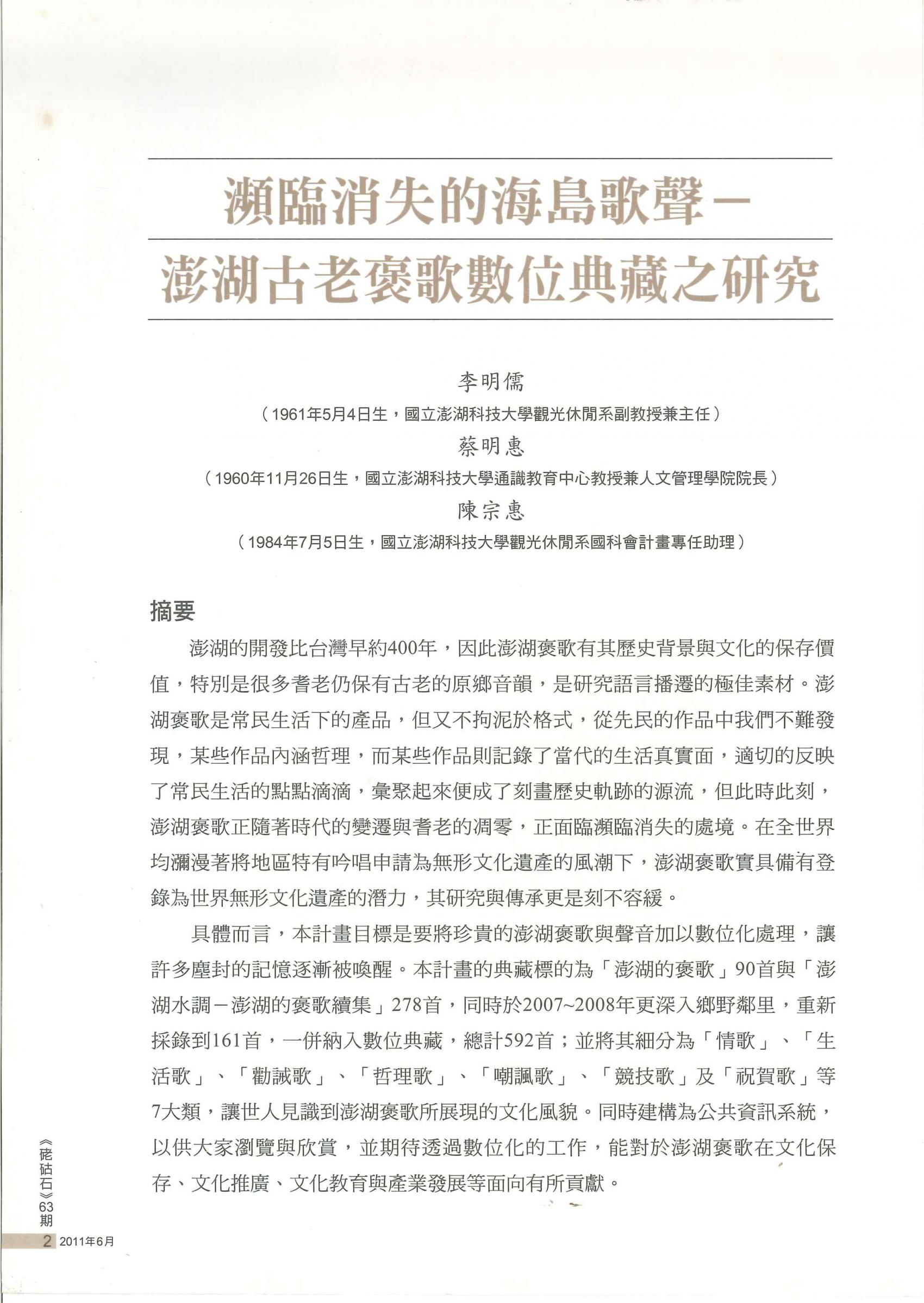 澎湖文獻資料庫提供全文檢索功能,但不持有任何學術文章版權。系統內所有文章版權,皆隸屬於相關作者與單位。