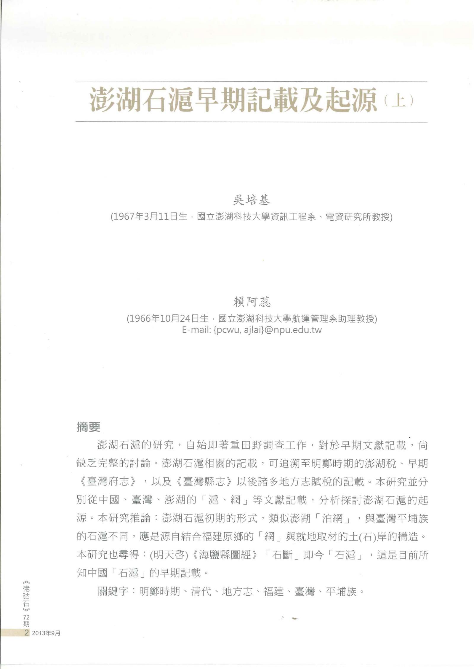 澎湖文獻資料庫提供全文檢索功能,但不持有任何學術文章版權。系統內所有文章版權,皆隸屬於相關作者與單位。