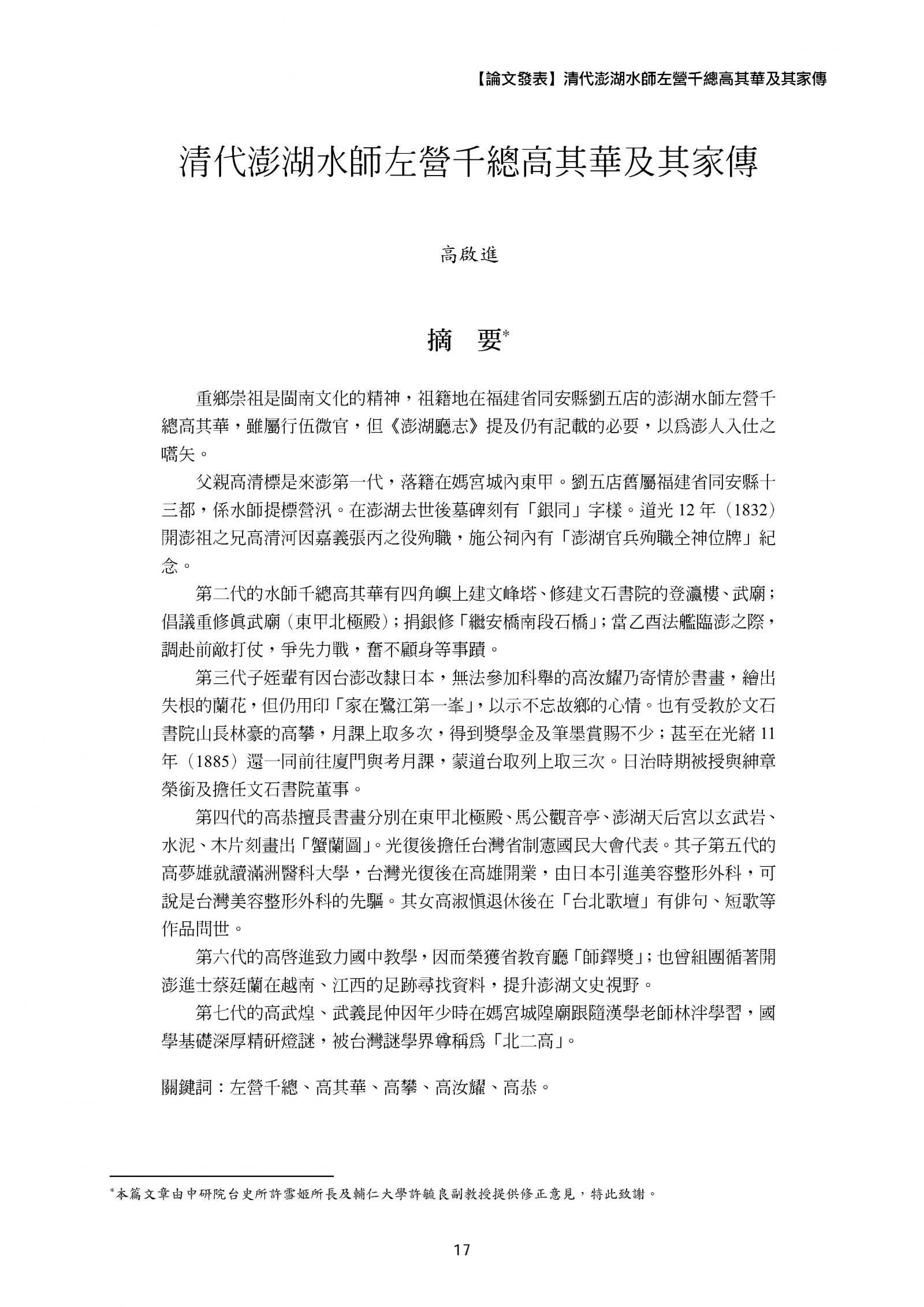 澎湖文獻資料庫提供全文檢索功能,但不持有任何學術文章版權。系統內所有文章版權,皆隸屬於相關作者與單位。