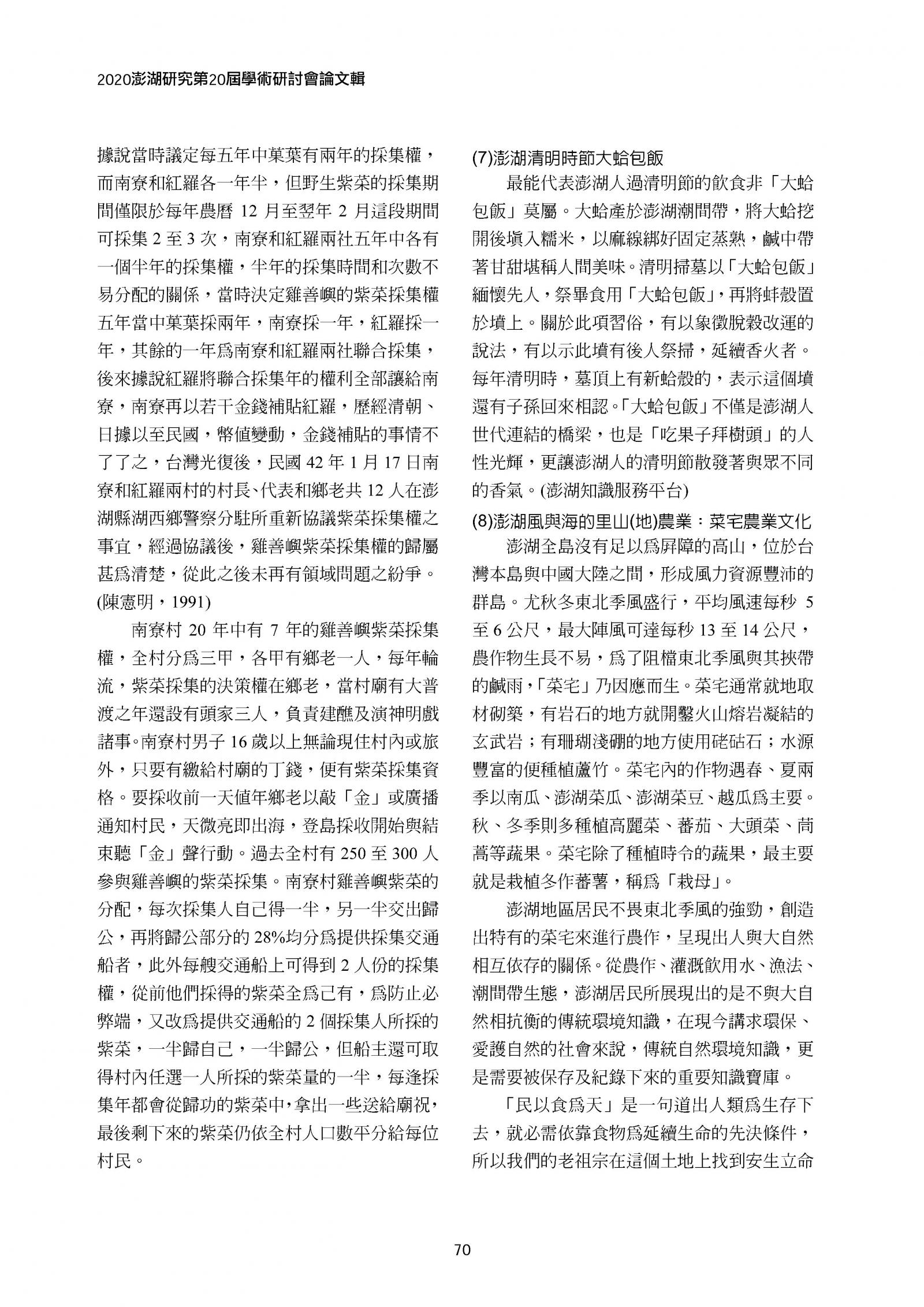 2020澎湖研究─第20屆學術研討會論文輯|書內搜尋