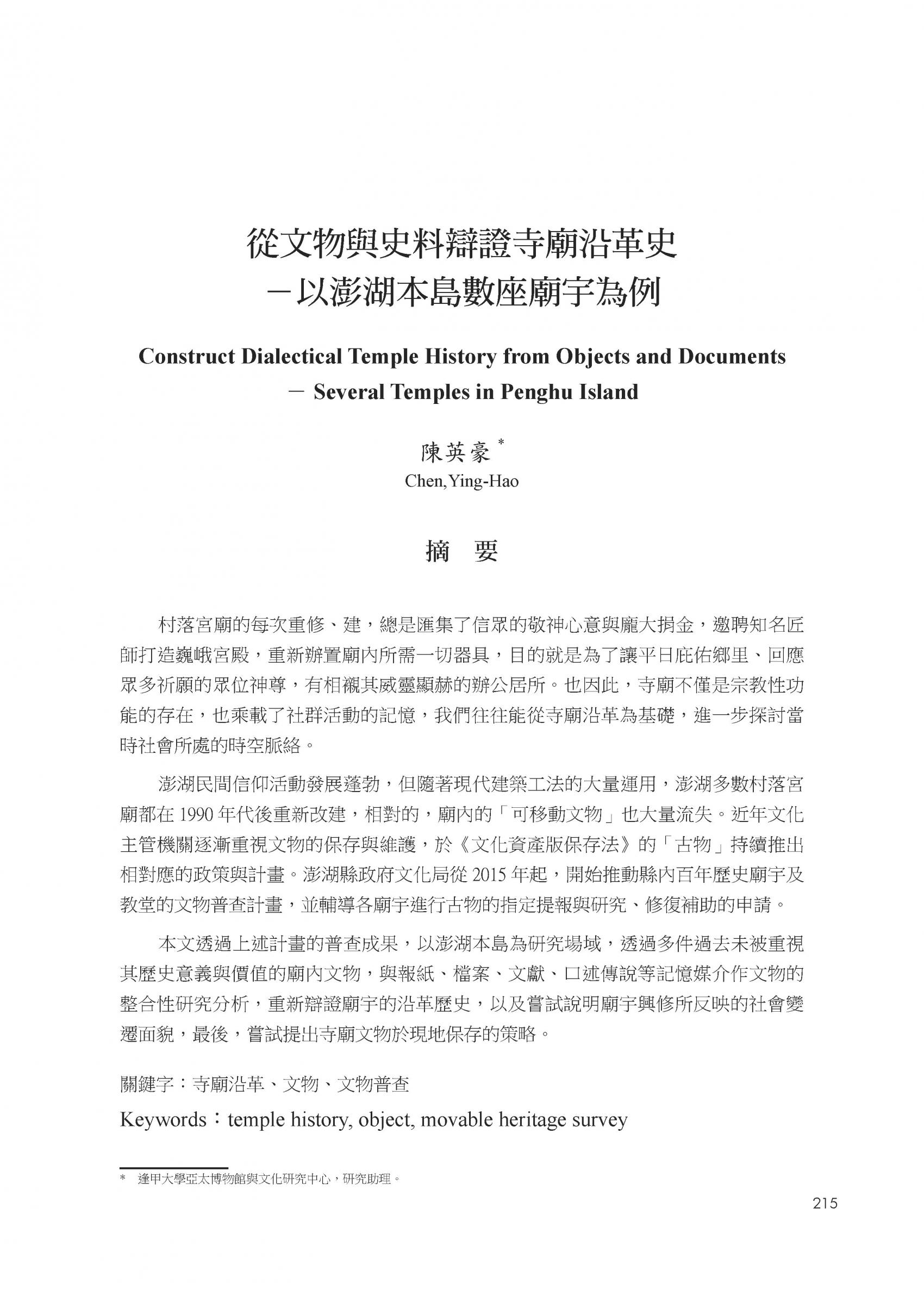 澎湖文獻資料庫提供全文檢索功能,但不持有任何學術文章版權。系統內所有文章版權,皆隸屬於相關作者與單位。
