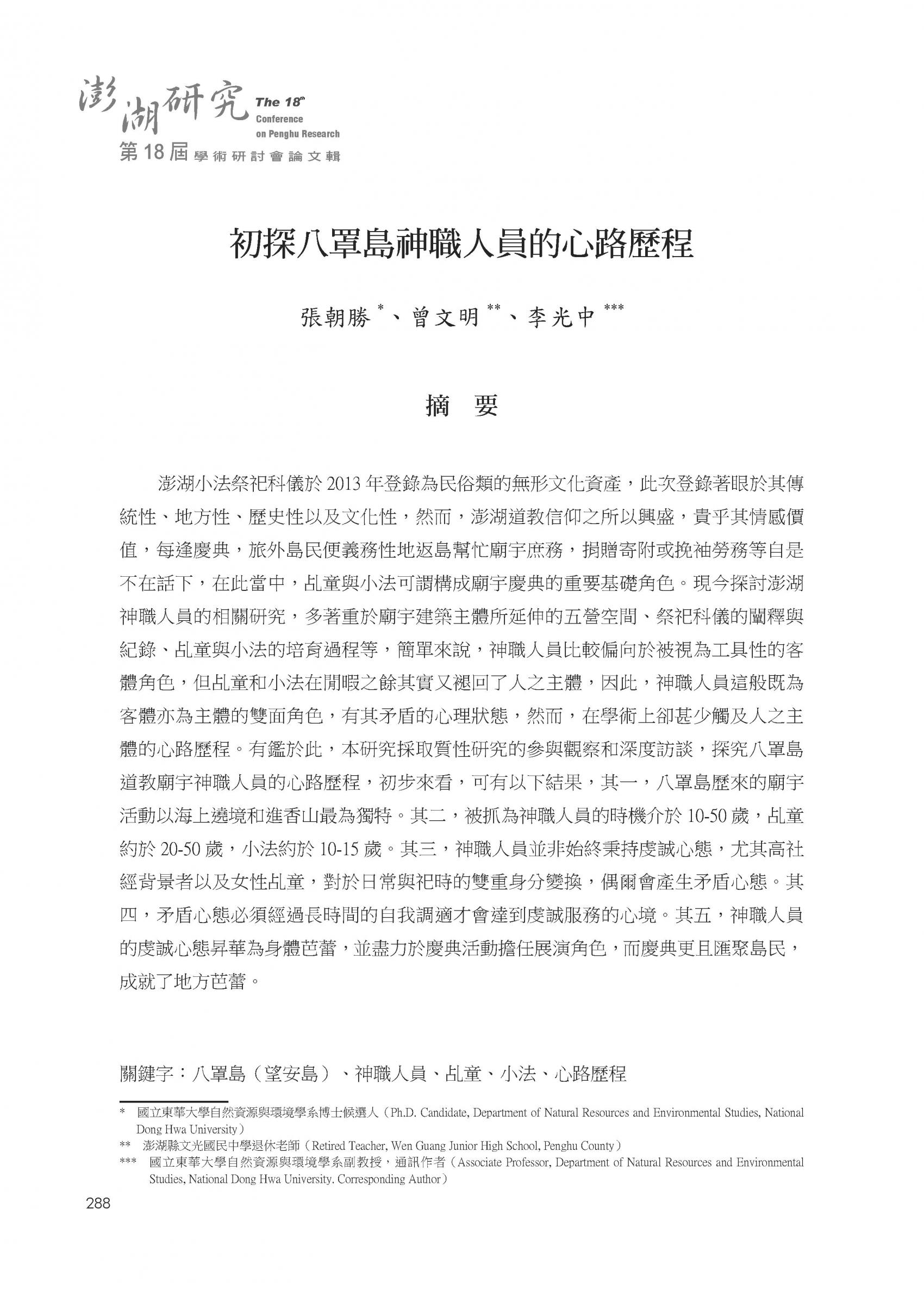 2018澎湖研究─第18屆學術研討會論文輯|書內搜尋