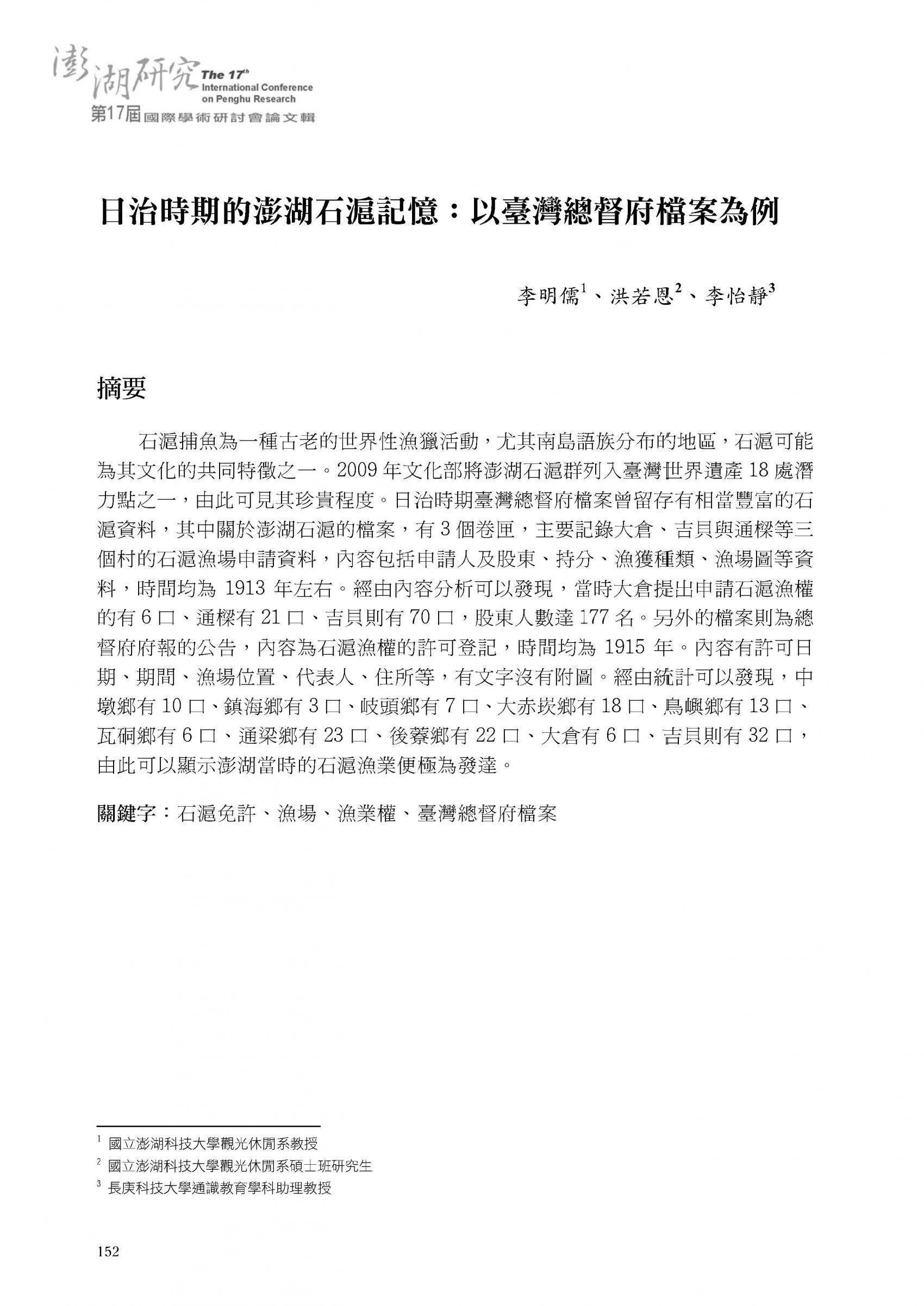 2017澎湖研究─第17屆學術研討會論文輯|書內搜尋