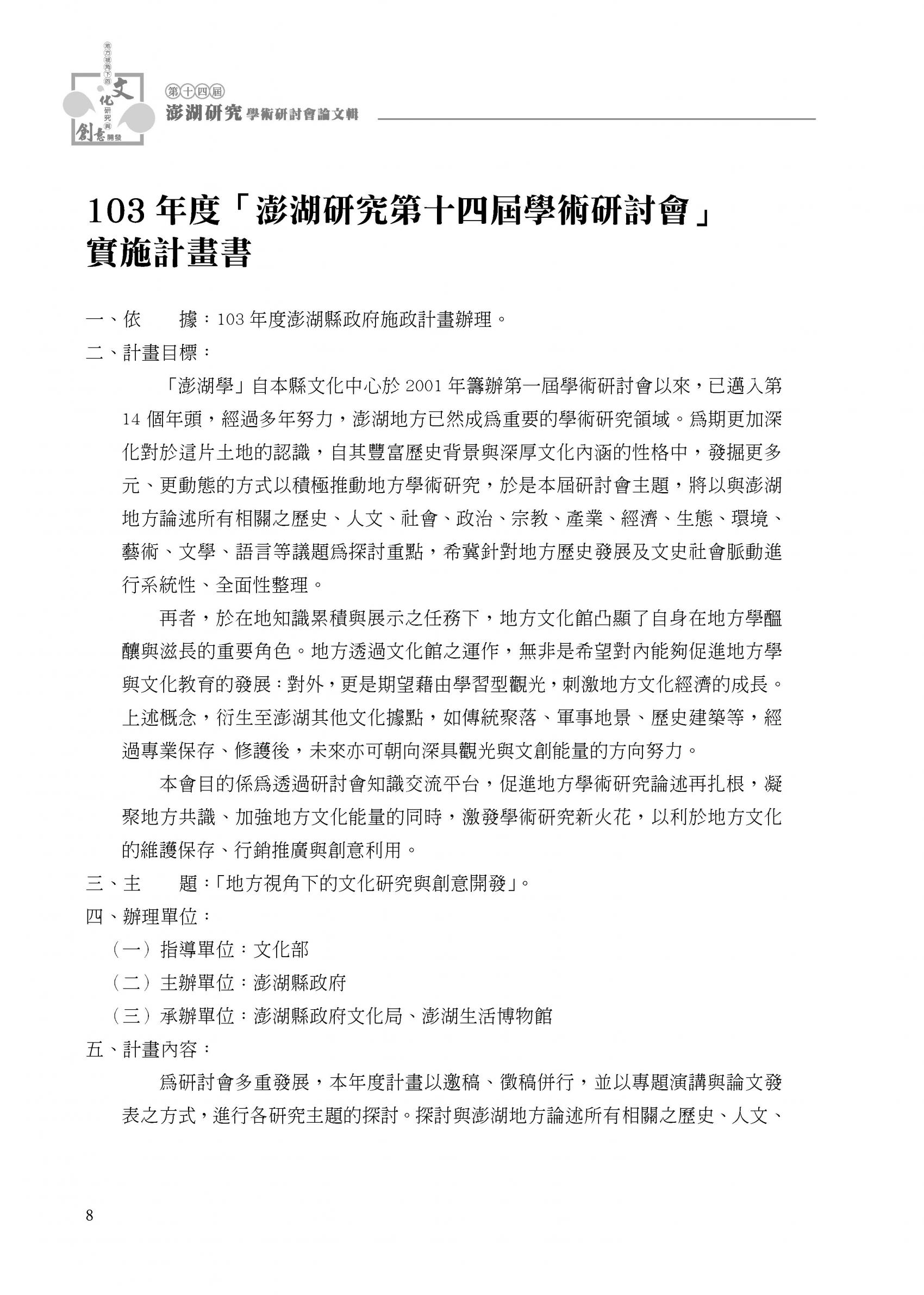 2014澎湖研究─第14屆學術研討會論文輯|書內搜尋