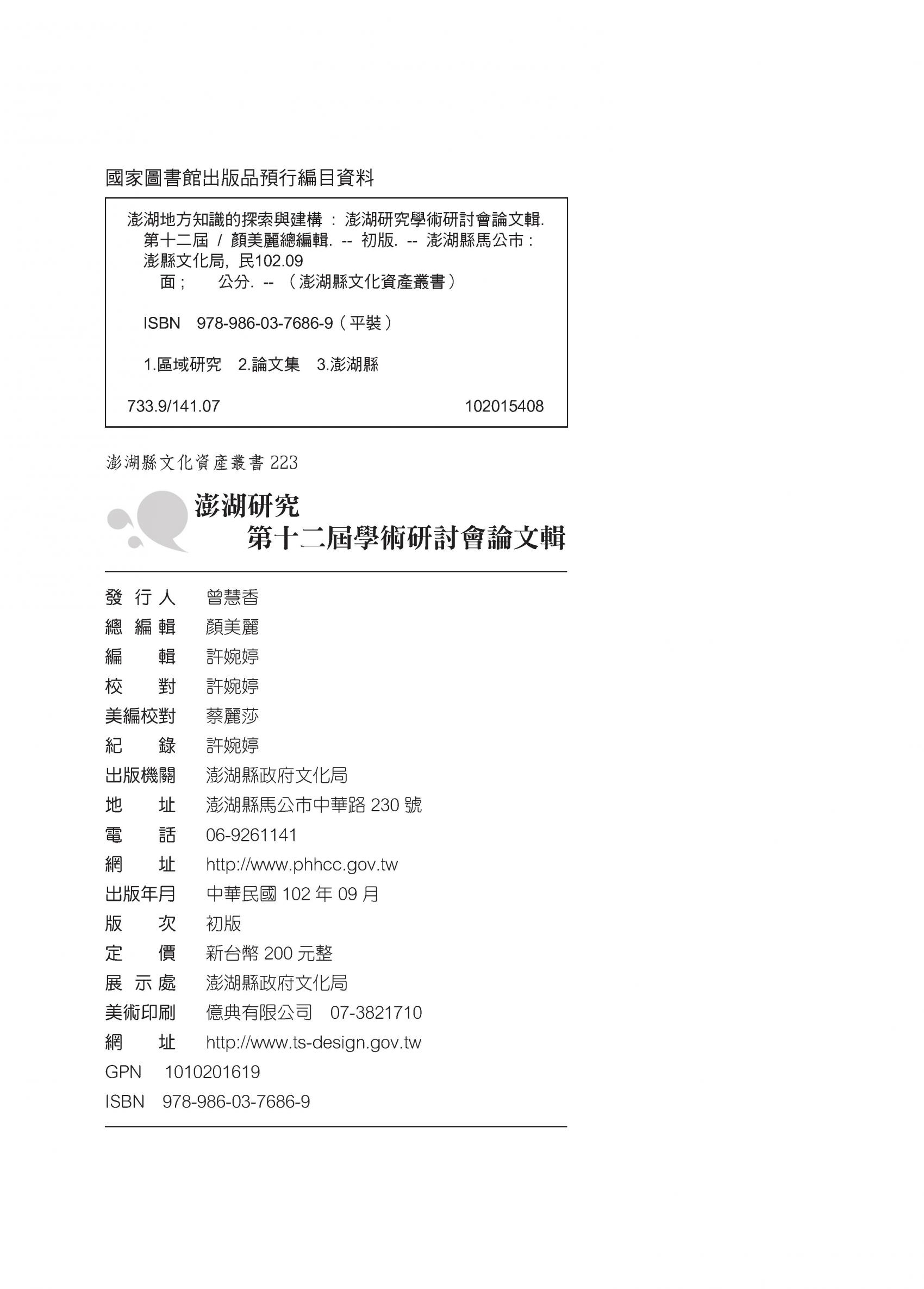 2012澎湖研究─第12屆學術研討會論文輯