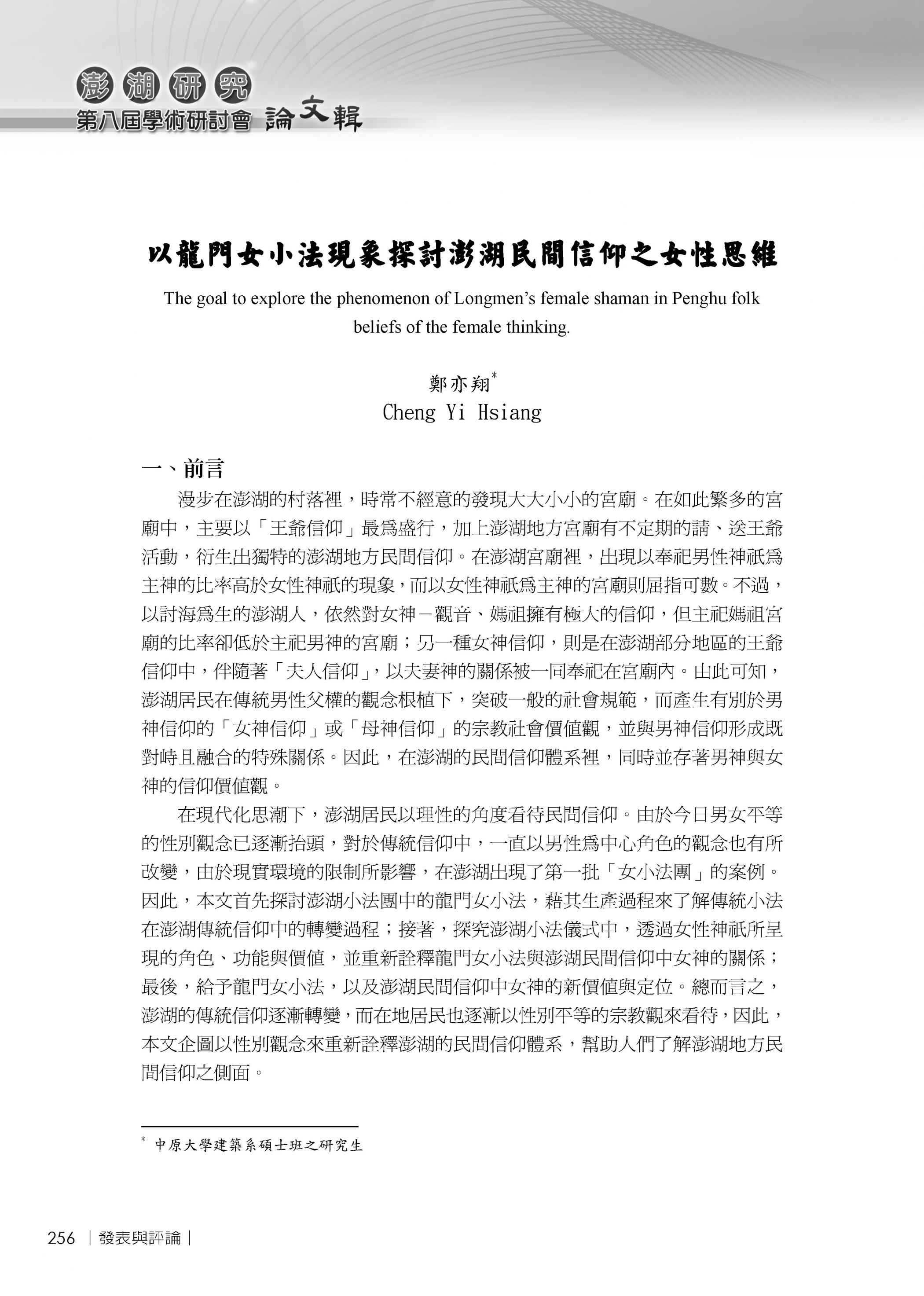 澎湖文獻資料庫提供全文檢索功能,但不持有任何學術文章版權。系統內所有文章版權,皆隸屬於相關作者與單位。
