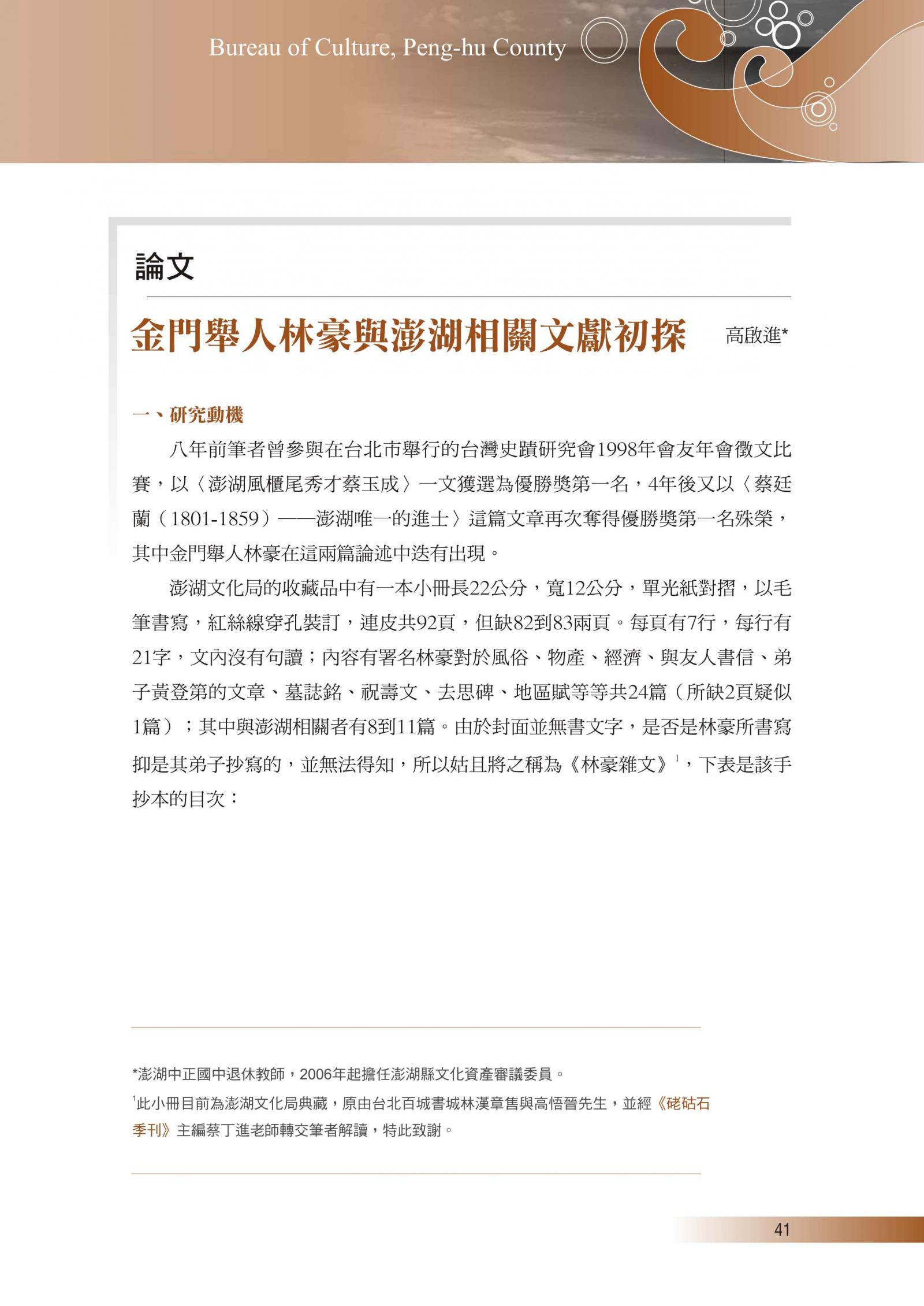 澎湖文獻資料庫提供全文檢索功能,但不持有任何學術文章版權。系統內所有文章版權,皆隸屬於相關作者與單位。