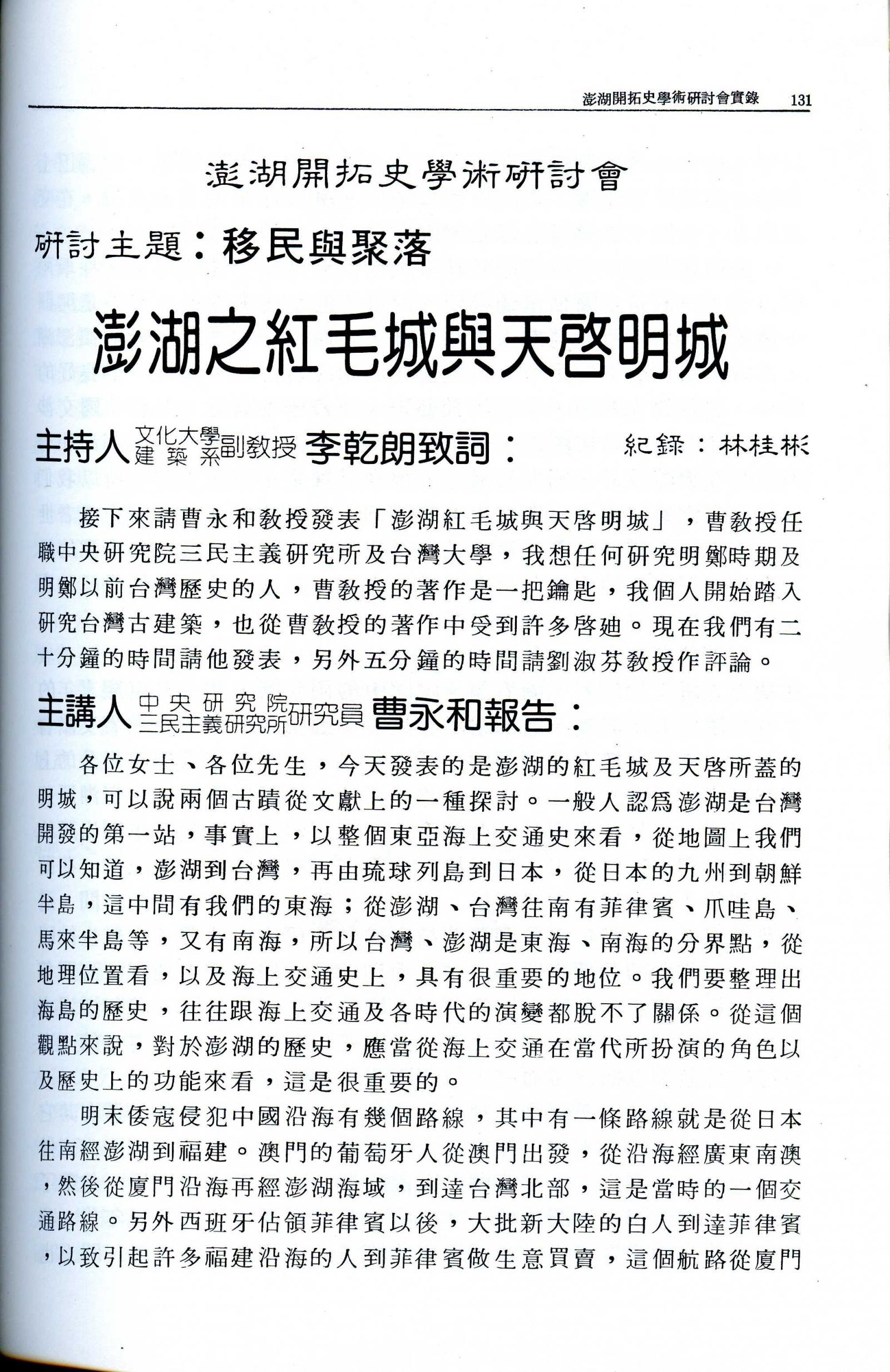 澎湖開拓史學術研討會實錄|西台古堡建堡暨媽宮城建城一百週年西台古堡建堡暨媽宮城建城一百週年