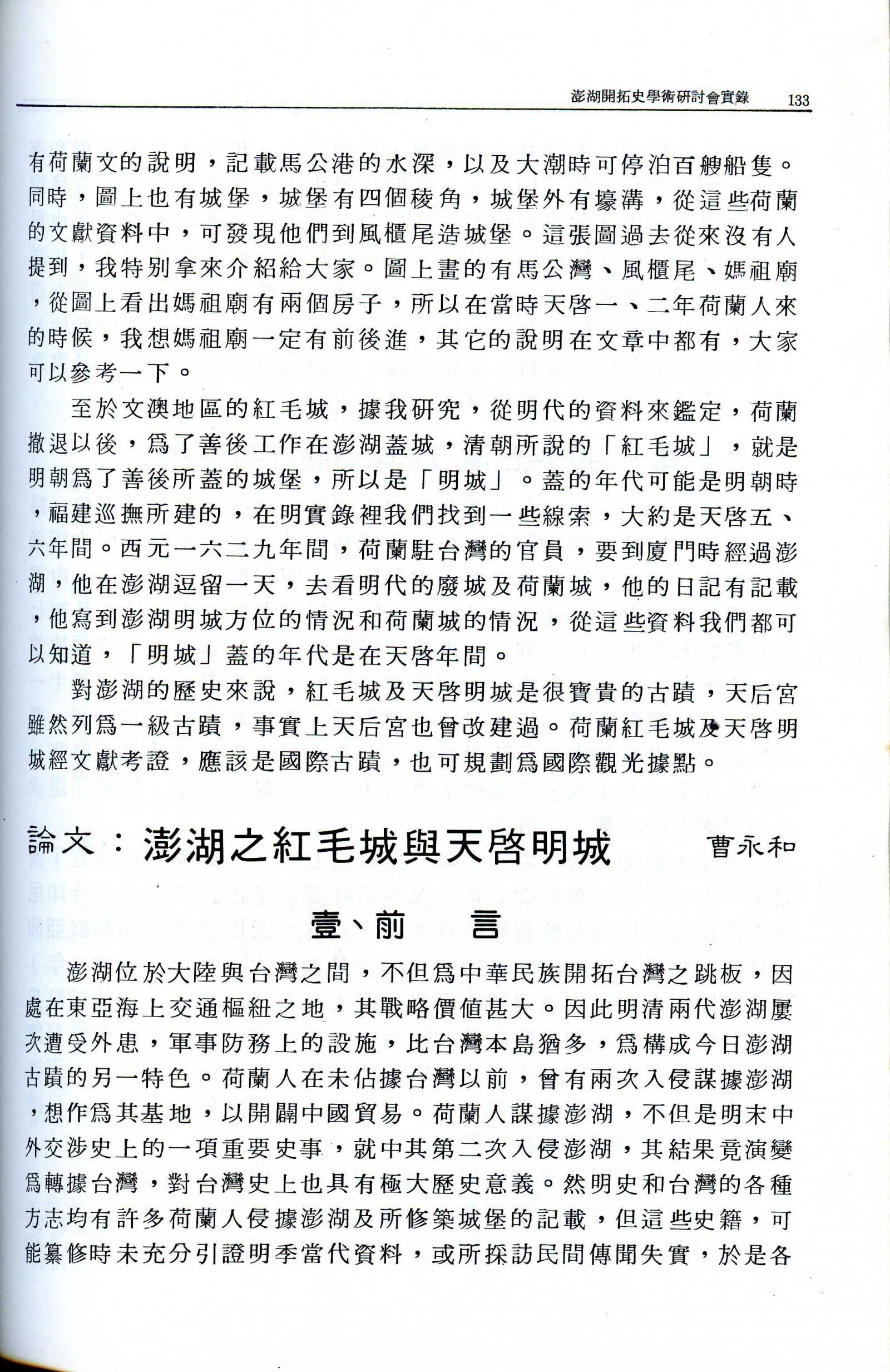 澎湖開拓史學術研討會實錄|西台古堡建堡暨媽宮城建城一百週年|書內搜尋