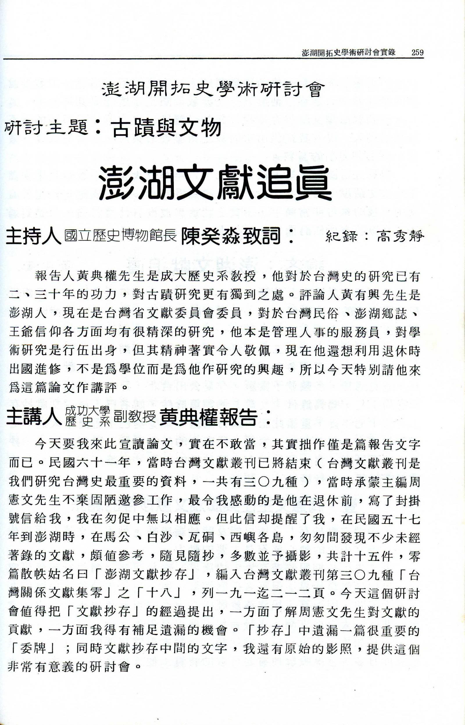 澎湖開拓史學術研討會實錄|西台古堡建堡暨媽宮城建城一百週年|書內搜尋