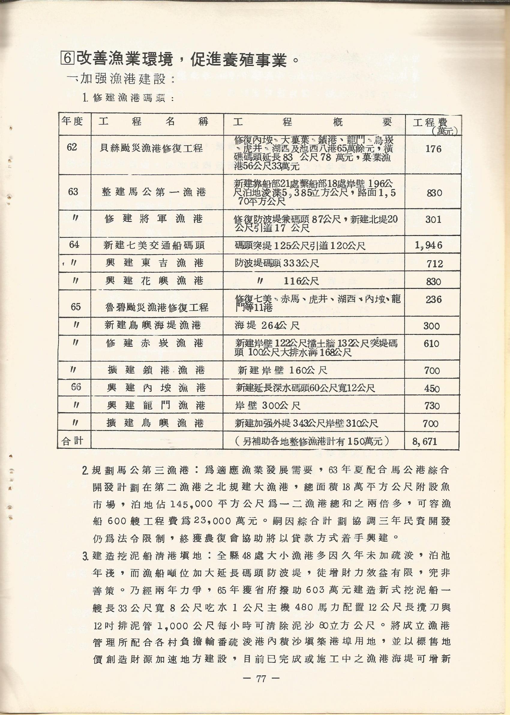 澎湖第七屆縣長五年縣政專輯|民國62─66年|書內搜尋