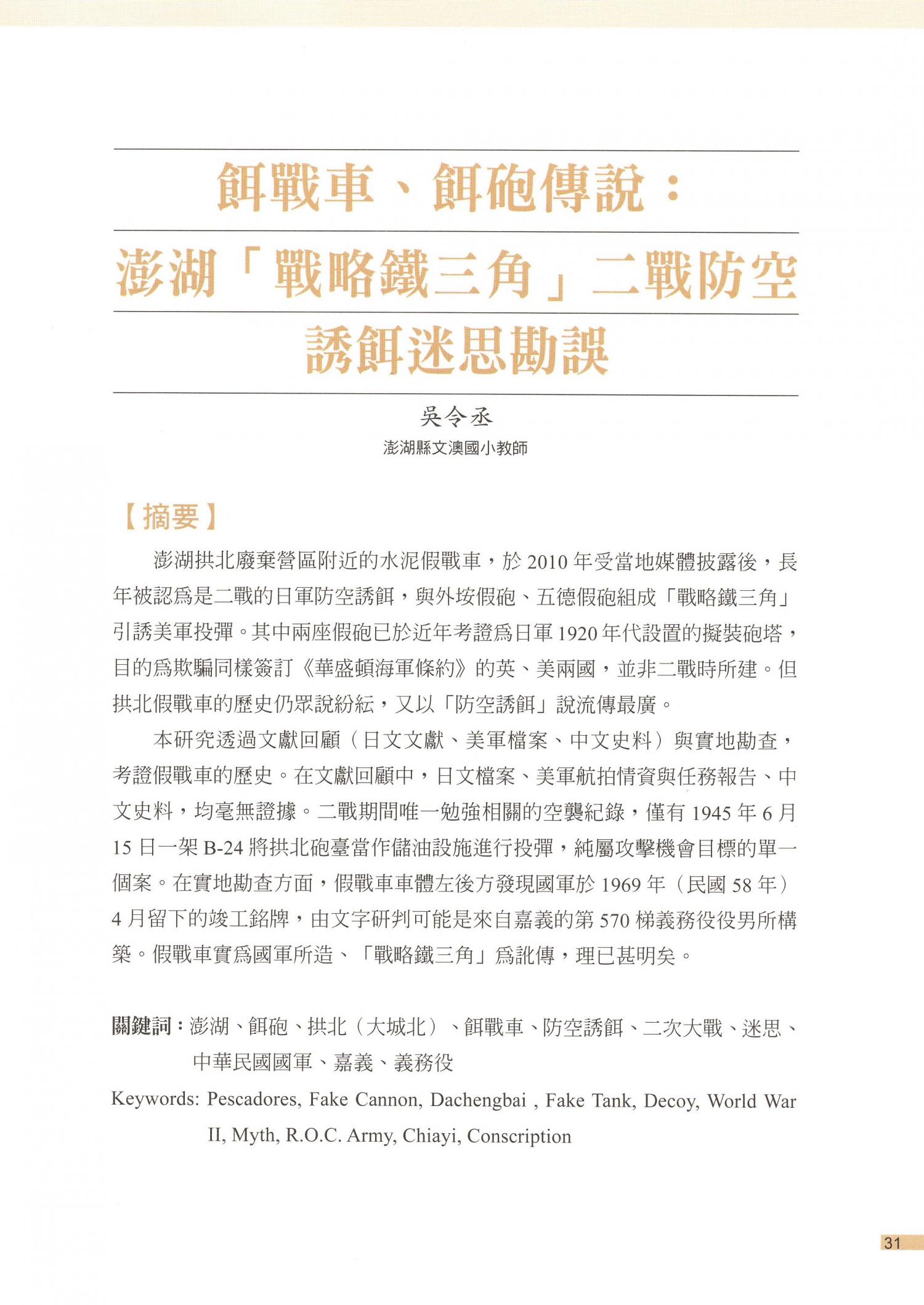 澎湖文獻資料庫提供全文檢索功能,但不持有任何學術文章版權。系統內所有文章版權,皆隸屬於相關作者與單位。