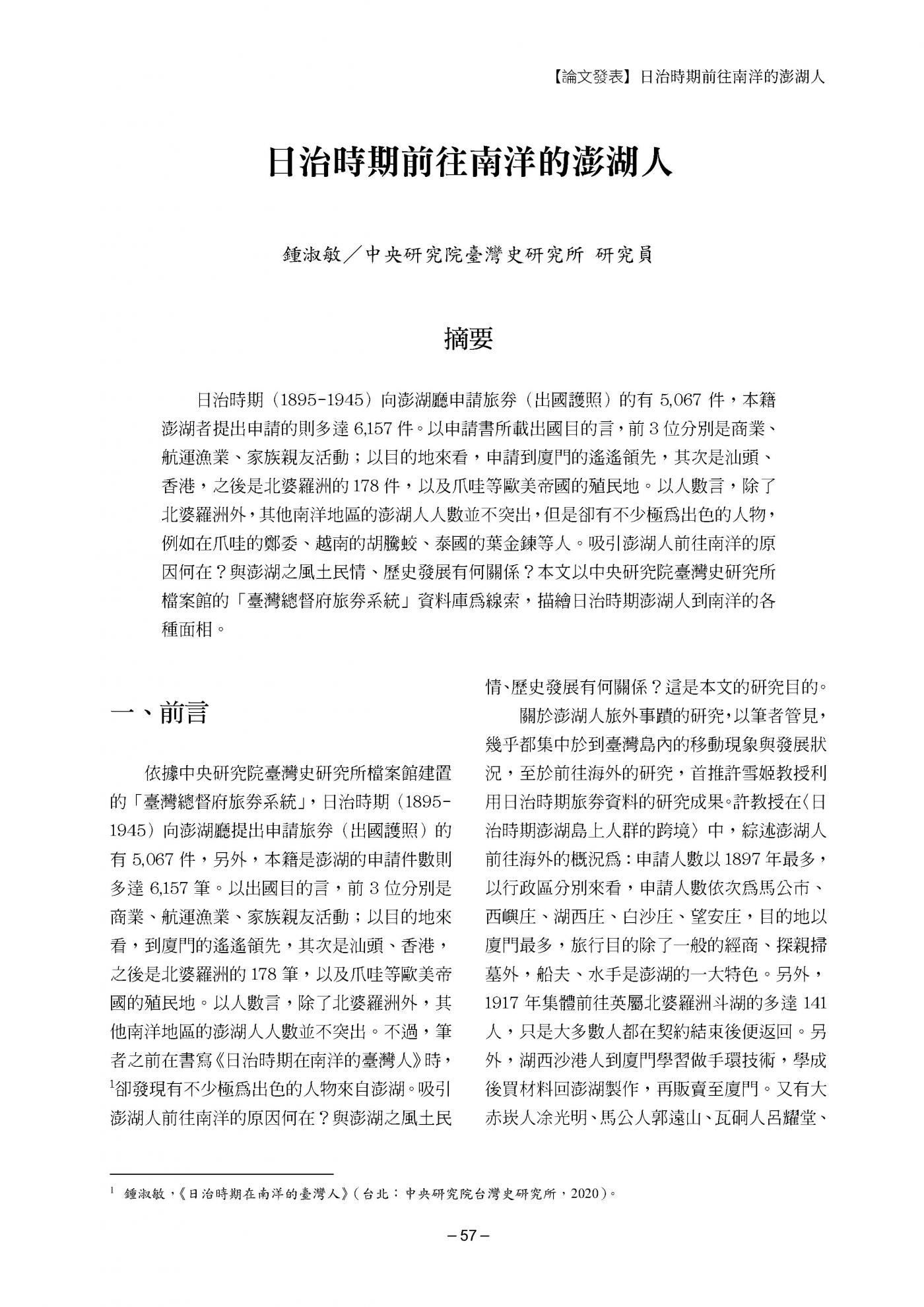 澎湖文獻資料庫提供全文檢索功能,但不持有任何學術文章版權。系統內所有文章版權,皆隸屬於相關作者與單位。