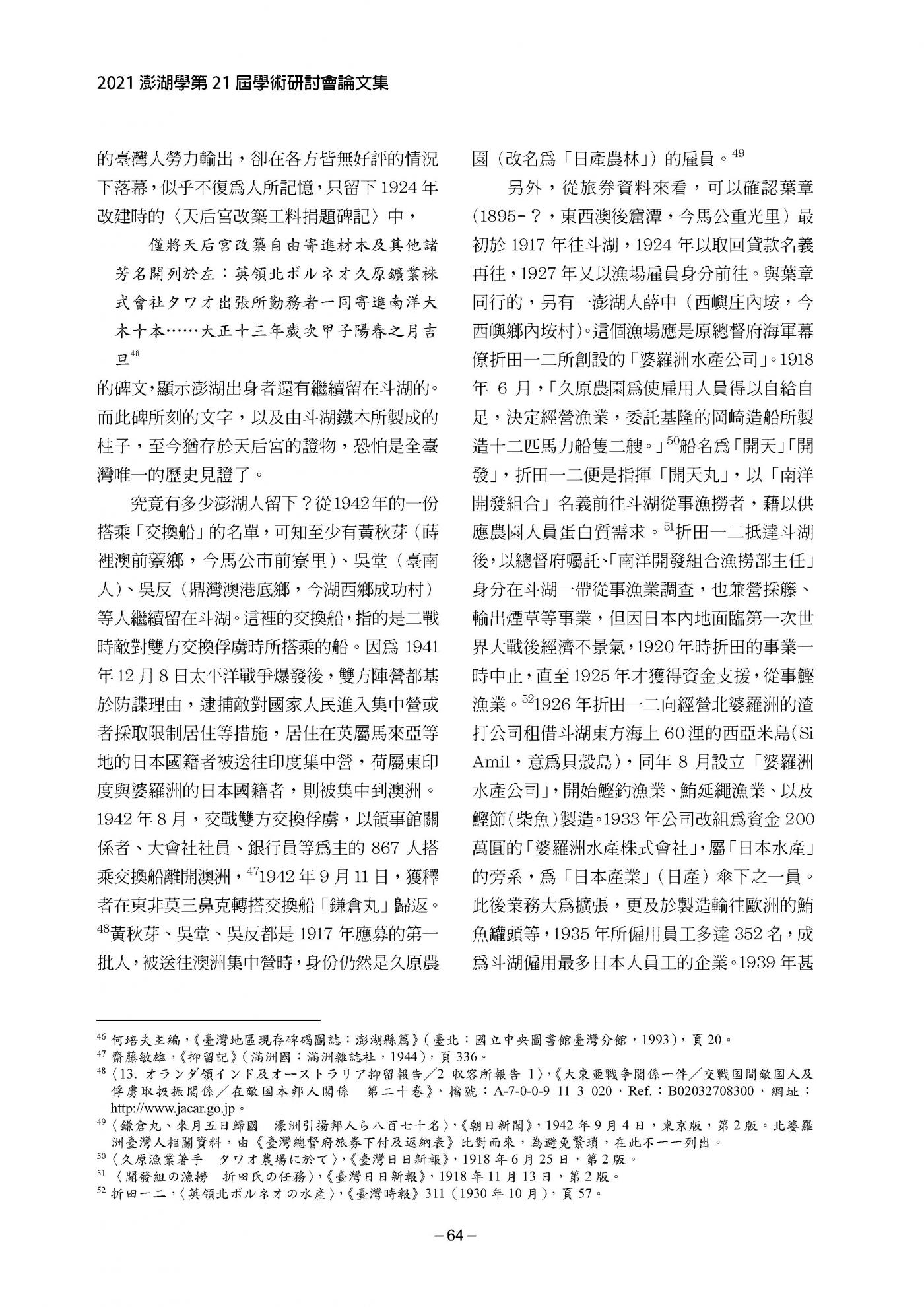 2021澎湖研究─第21屆學術研討會論文輯|書內搜尋