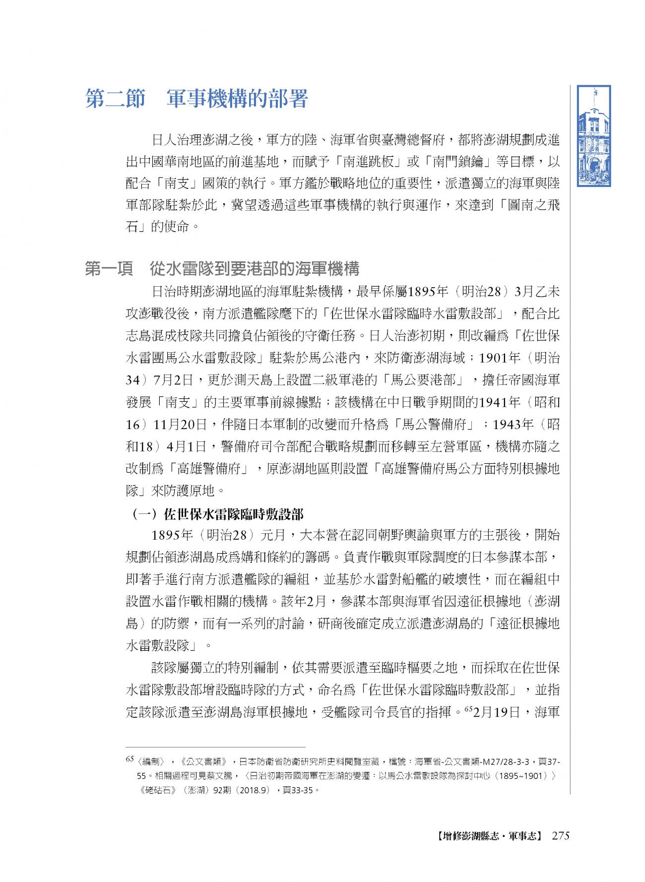增修澎湖縣志|軍事志軍事志