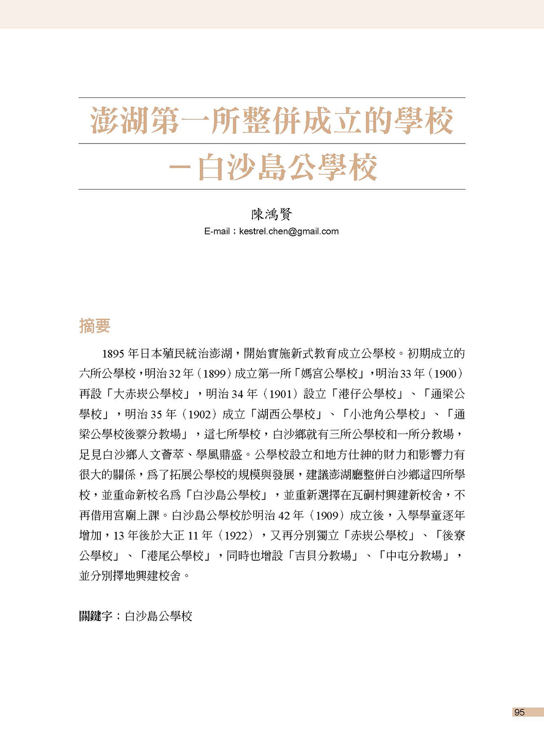 澎湖文獻資料庫提供全文檢索功能,但不持有任何學術文章版權。系統內所有文章版權,皆隸屬於相關作者與單位。